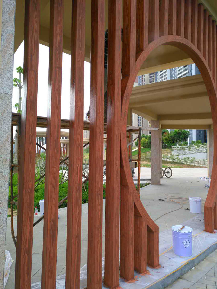 首頁 > 工程案例 > 鐵管木紋漆 > 惠州新開河項(xiàng)目拱門木紋漆