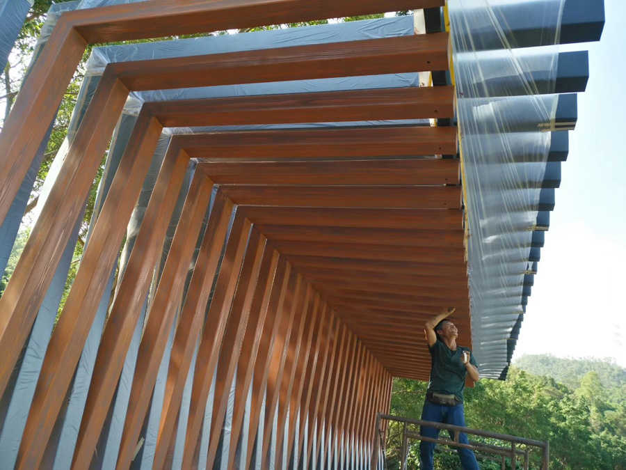 深圳公明李松萌社區(qū)體育中心廊架木紋漆
