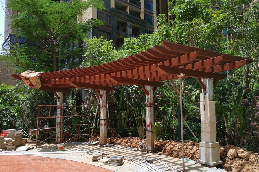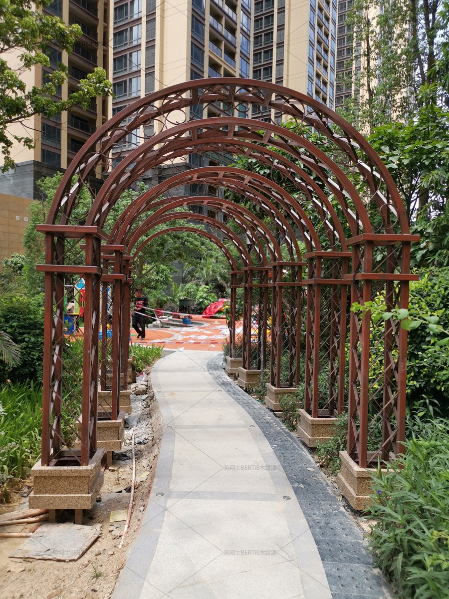 首頁 > 工程案例 > 鍍鋅管木紋漆 > 惠陽長通熙園葡萄架與花架木紋漆