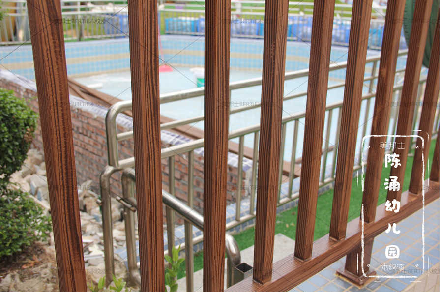 首頁 > 工程案例 > 不銹鋼木紋漆 > 陳涌幼兒園不銹鋼圍欄木紋