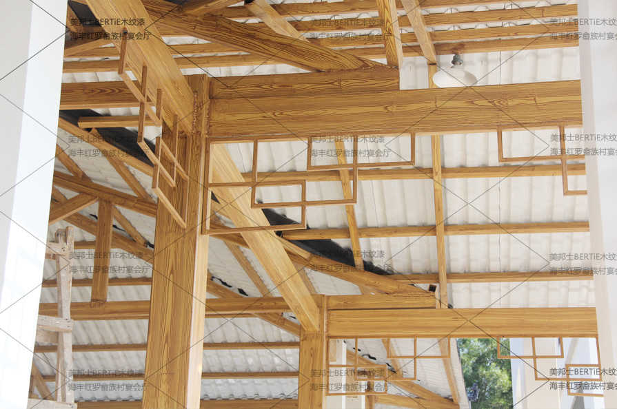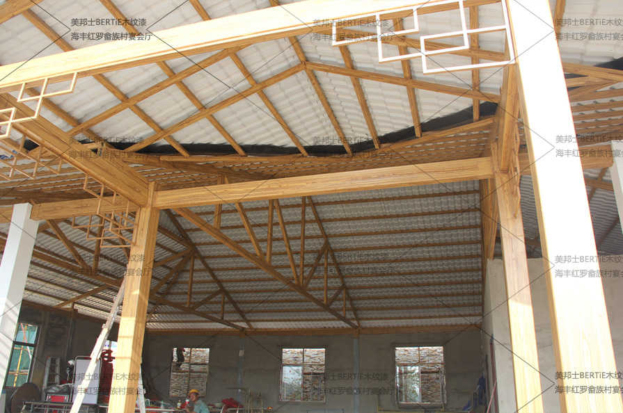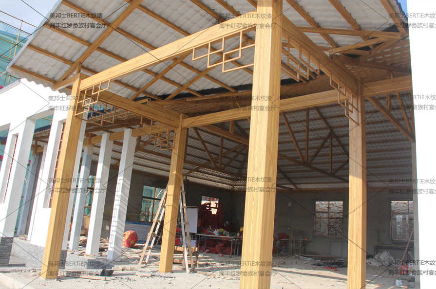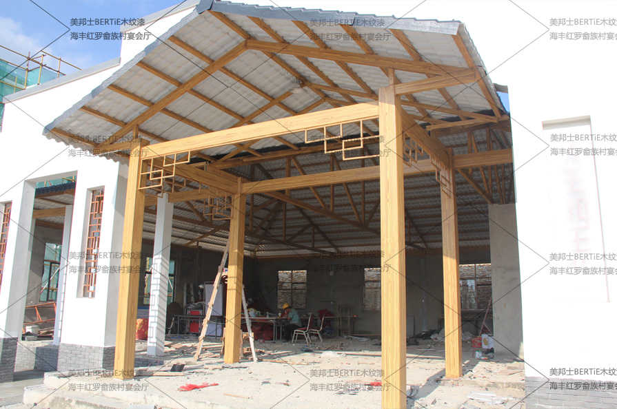 紅羅畬族村宴會(huì)廳鍍鋅管仿木紋漆