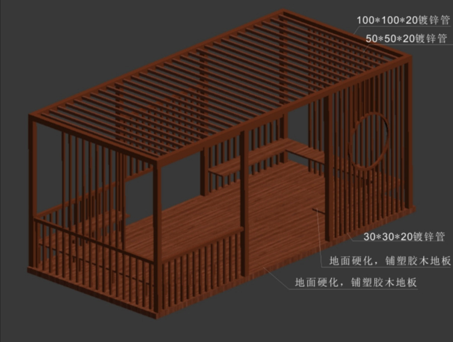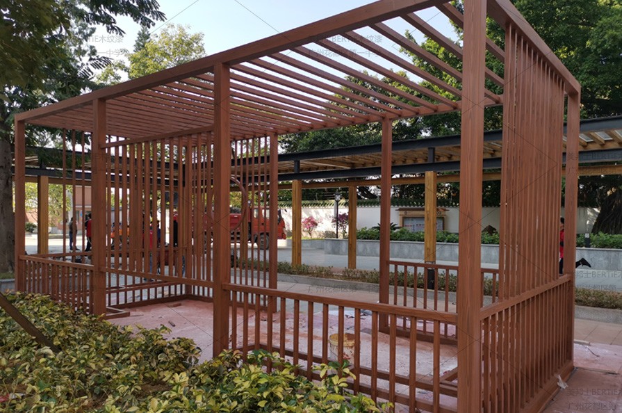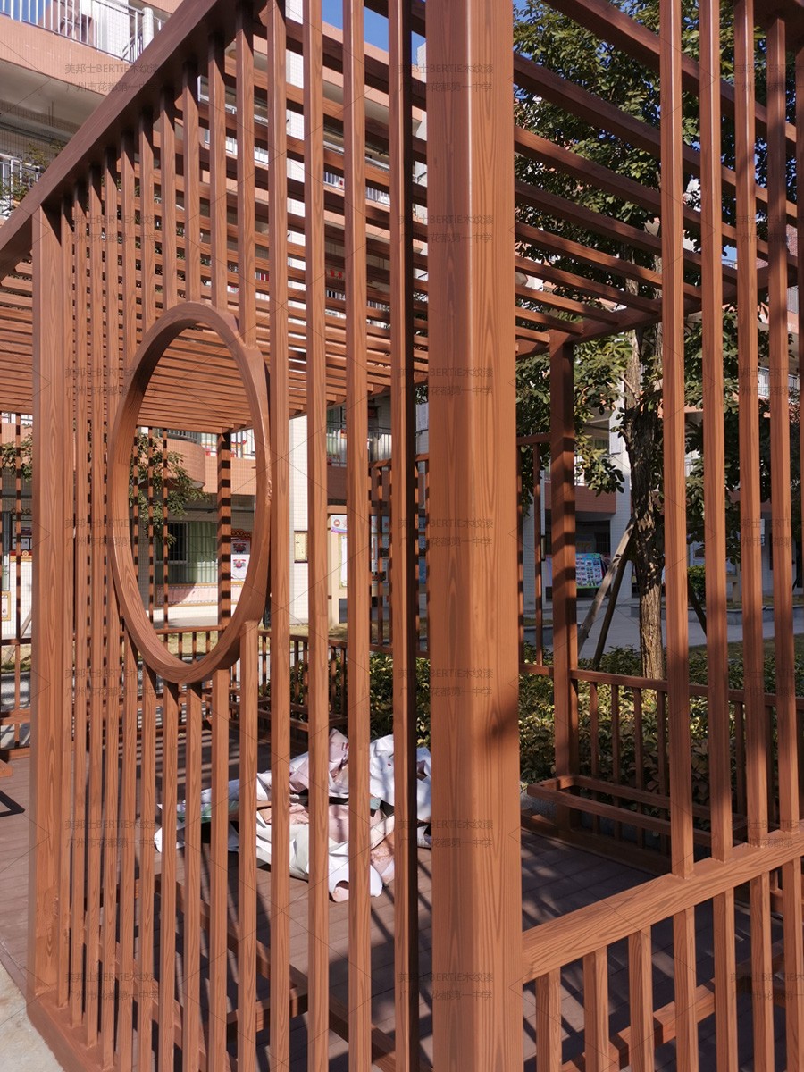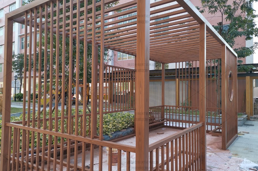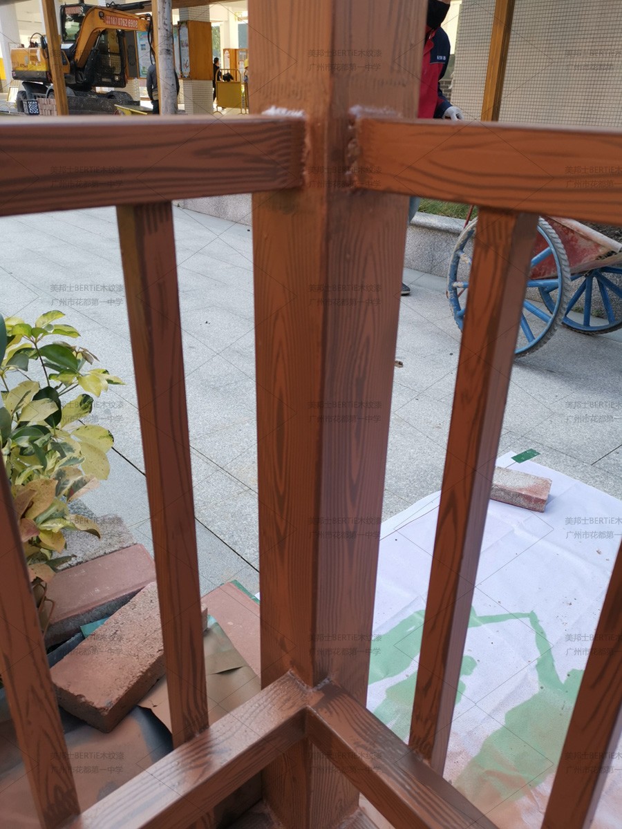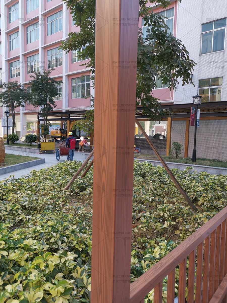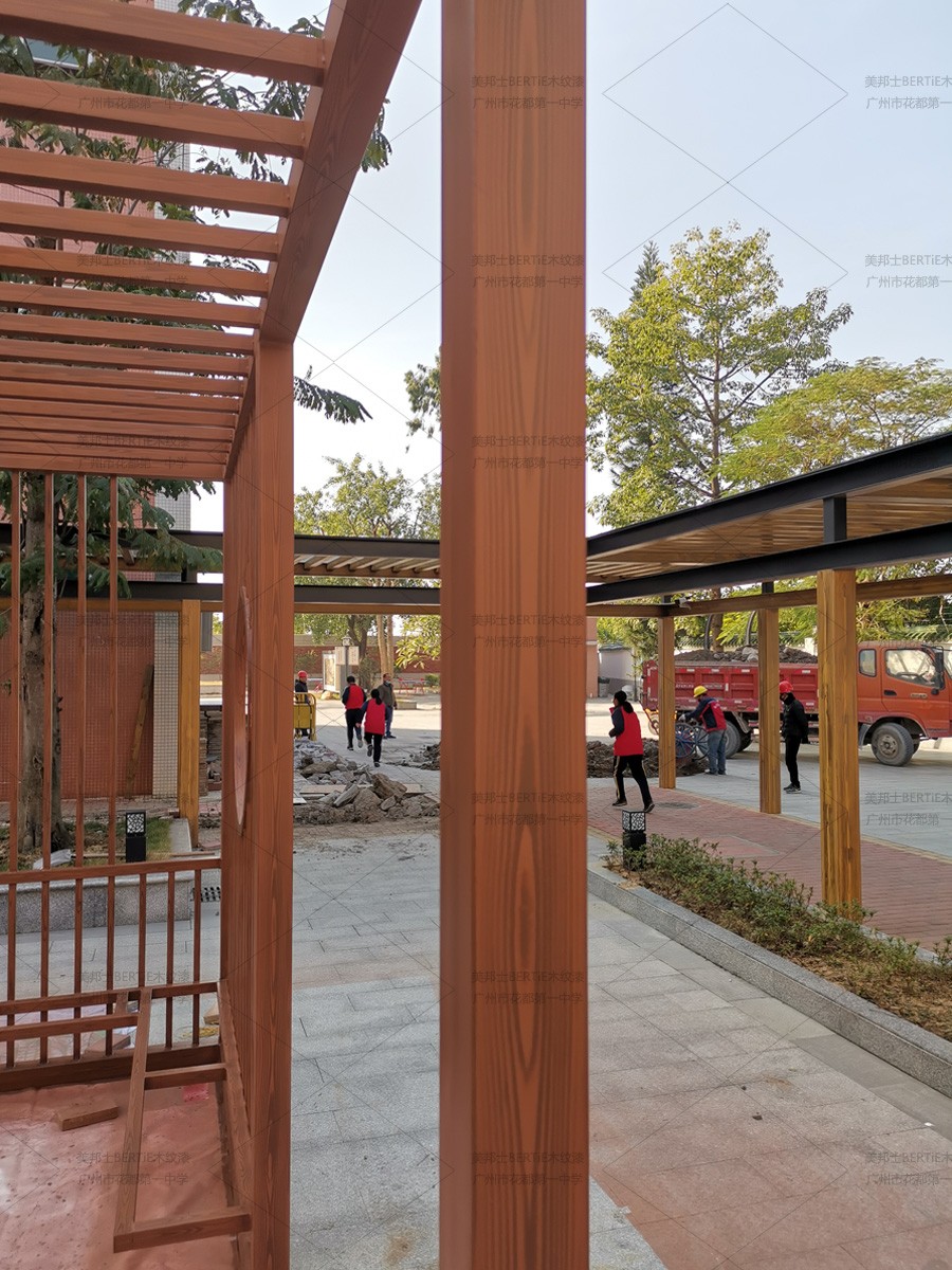 廣州花都第一中學(xué)鍍鋅管木紋廊架