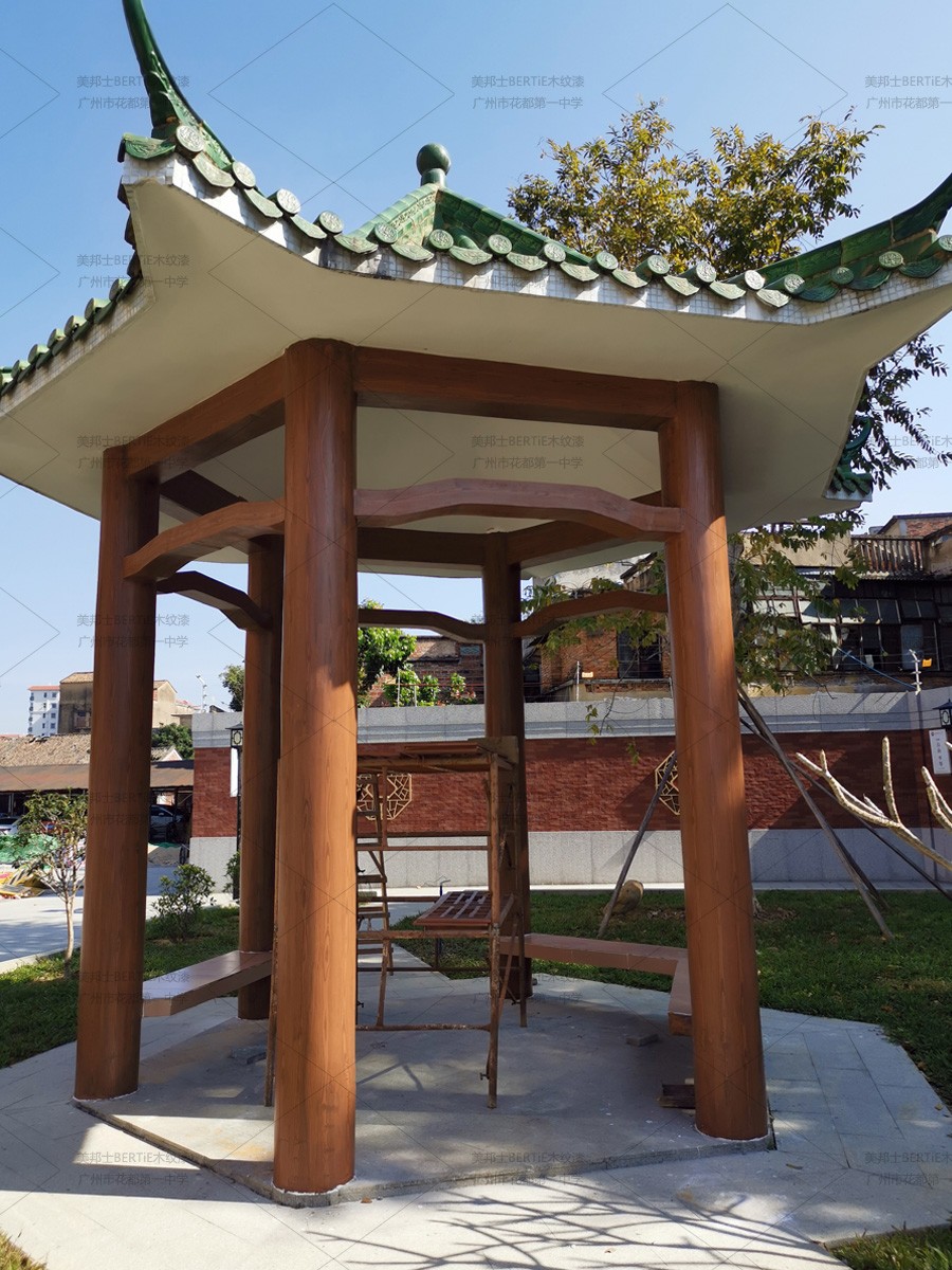 花都區(qū)第一中學(xué)混凝土涼亭木紋漆