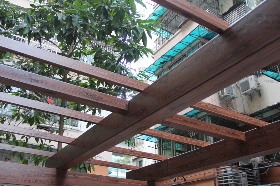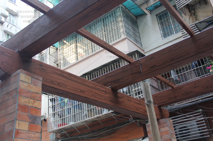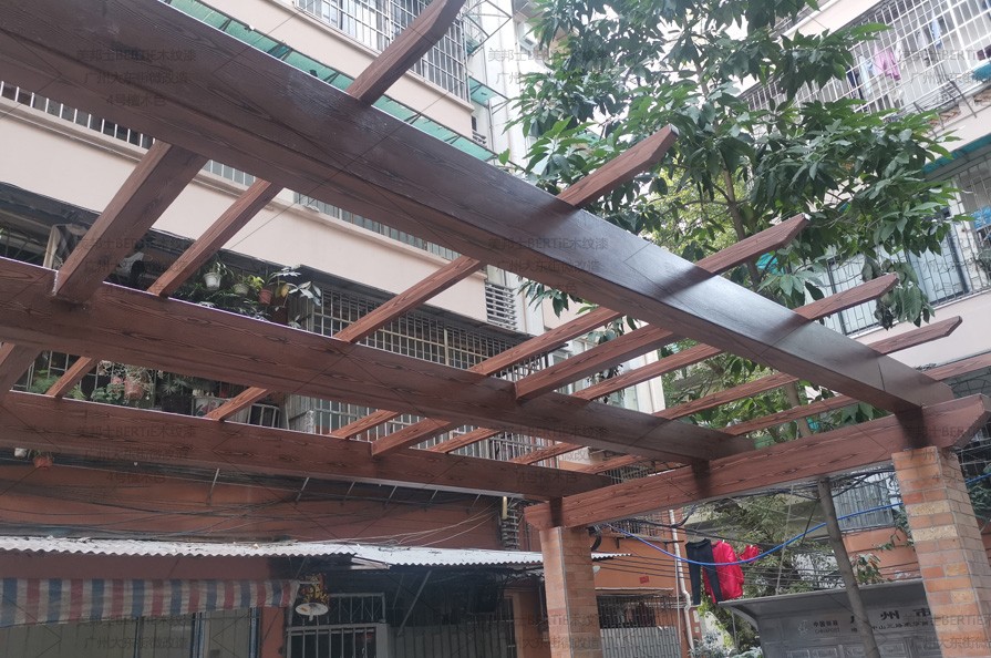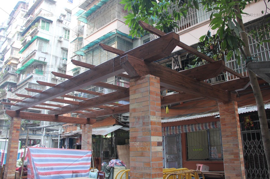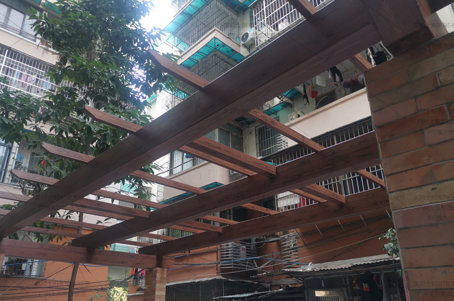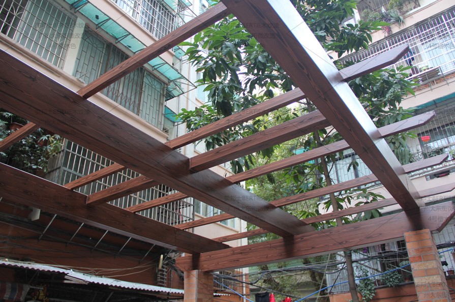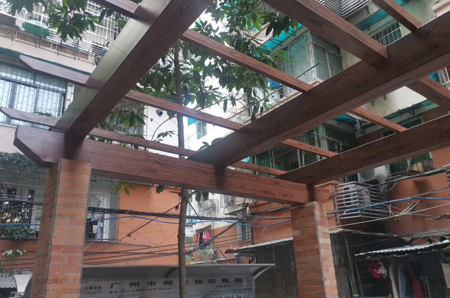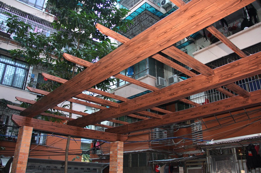 廣州大東街微改造1號(hào)廊架鐵管木紋漆