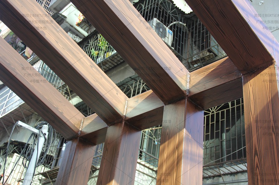 廣州大東街微改造3號(hào)鐵管廊架木紋漆