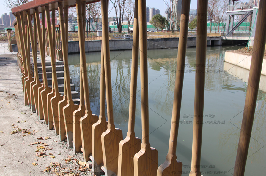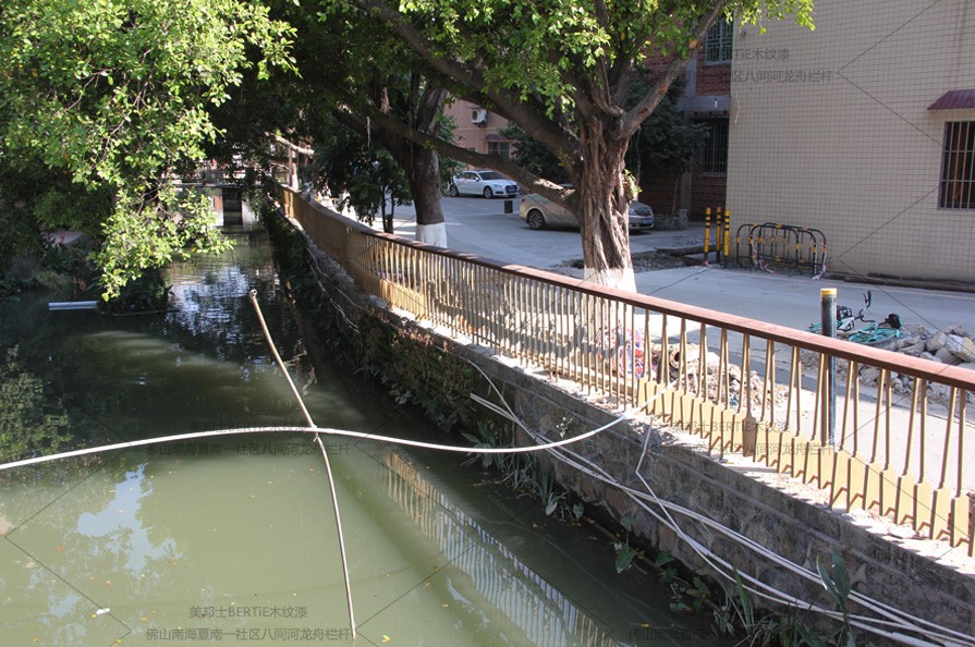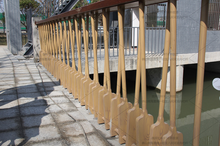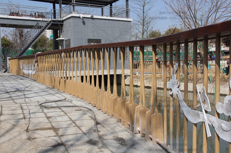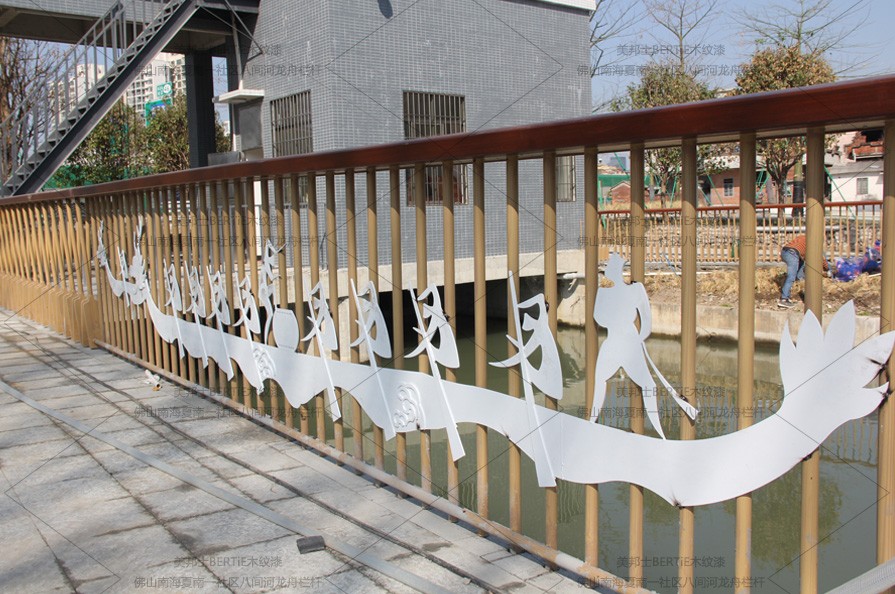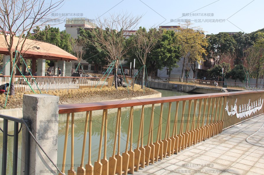 佛山南海八間河龍舟文化不銹鋼欄桿木紋漆