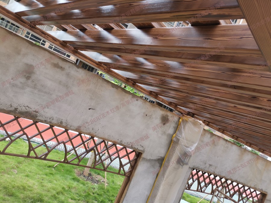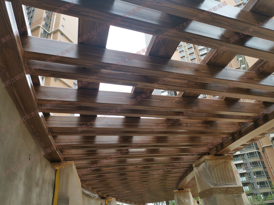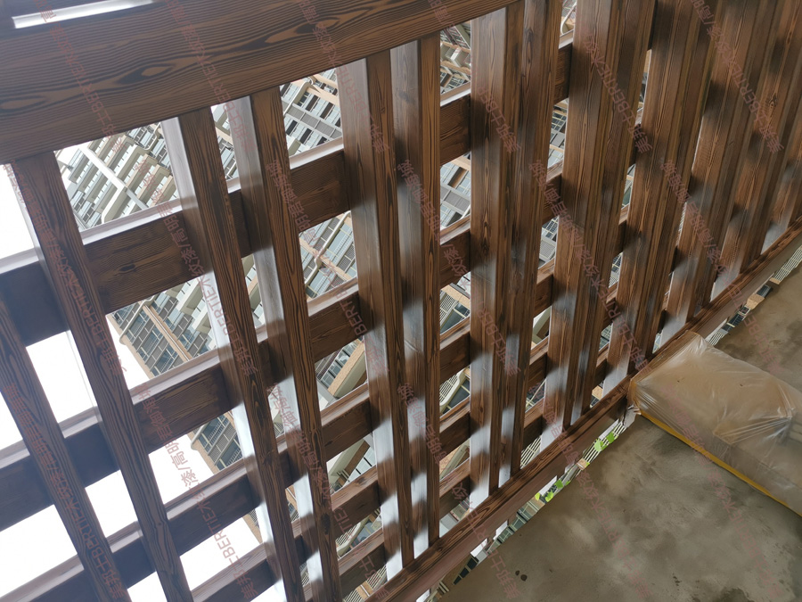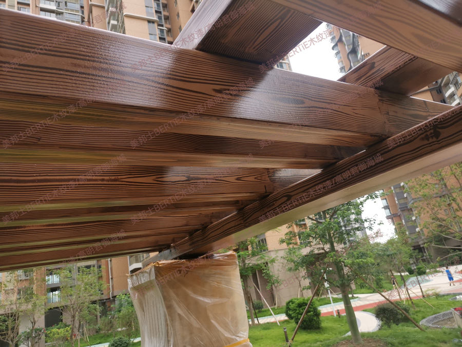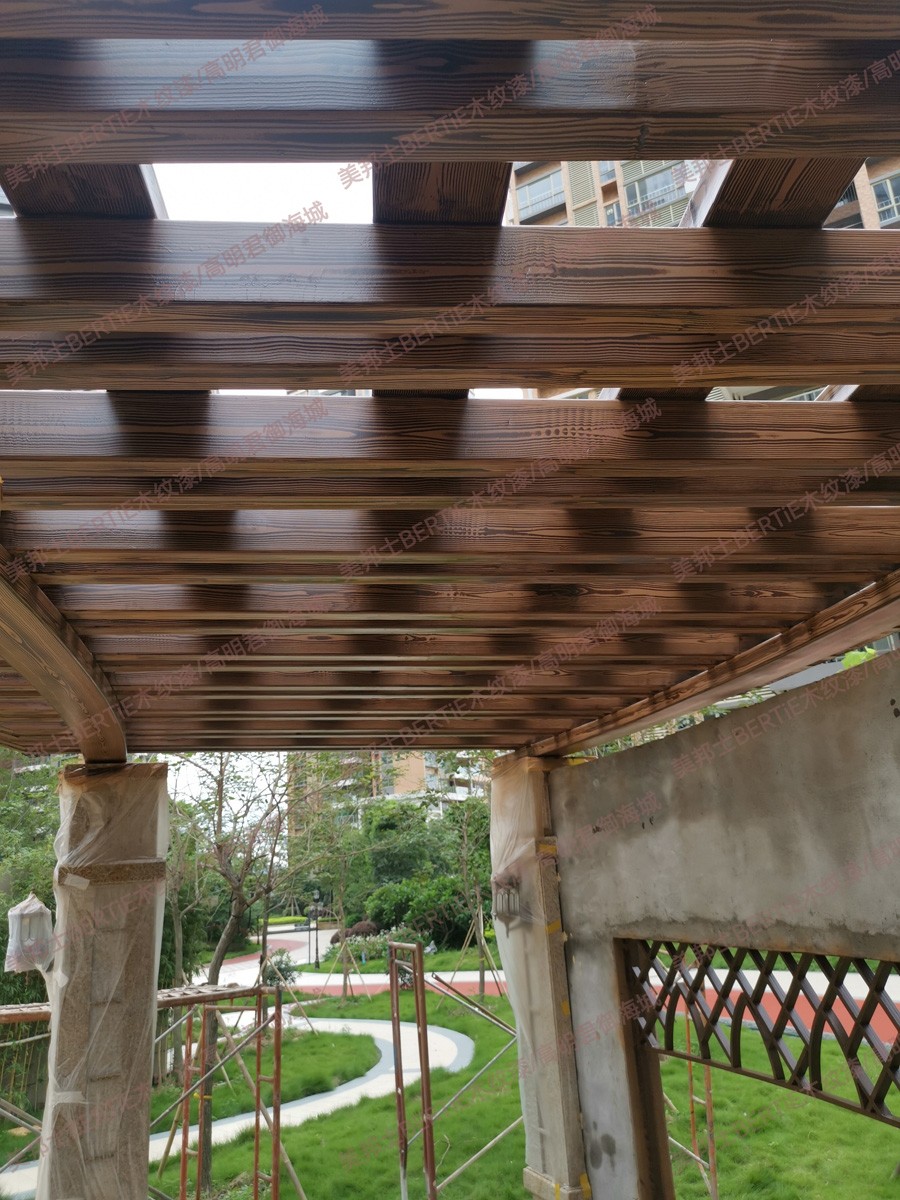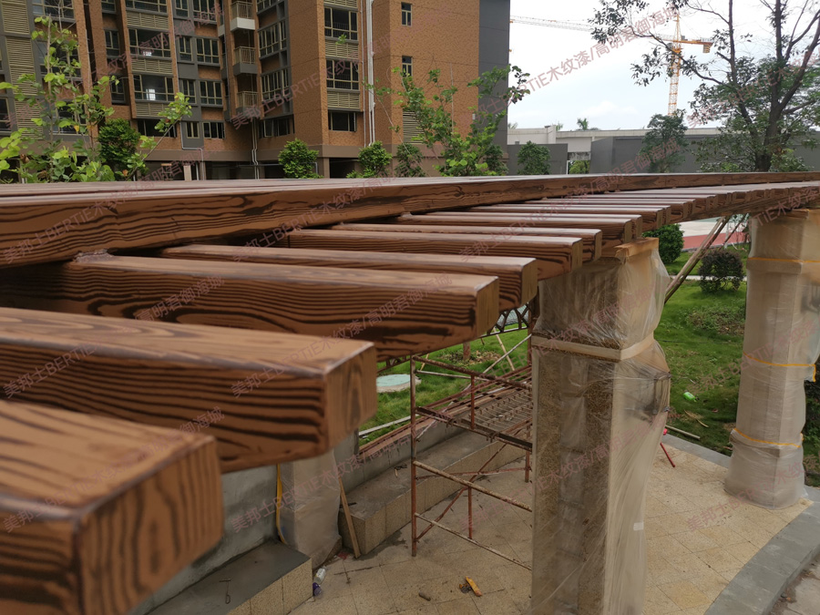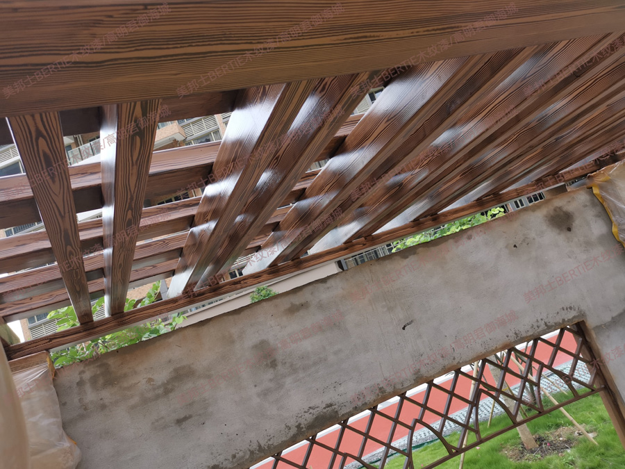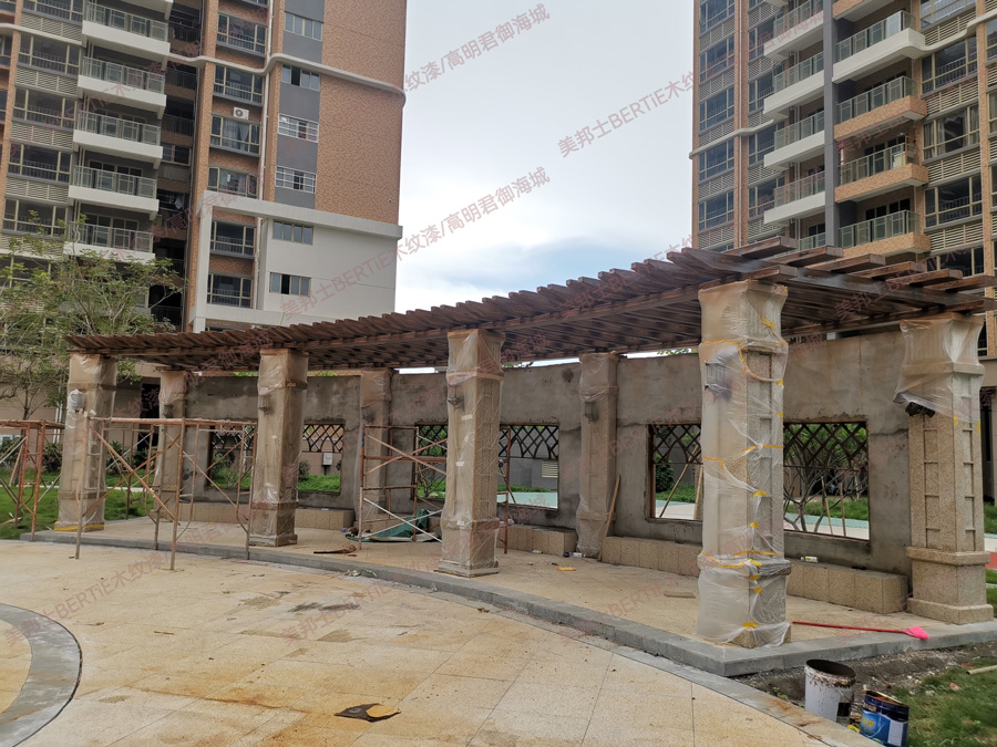 首頁 > 工程案例 > 鐵管木紋漆 > 高明君御海城鐵管廊架木紋漆