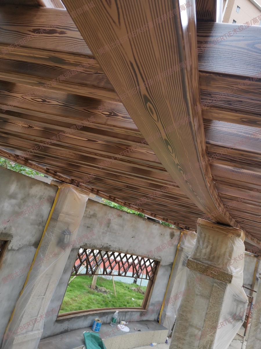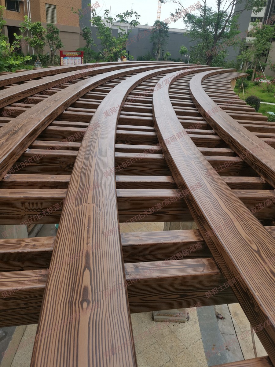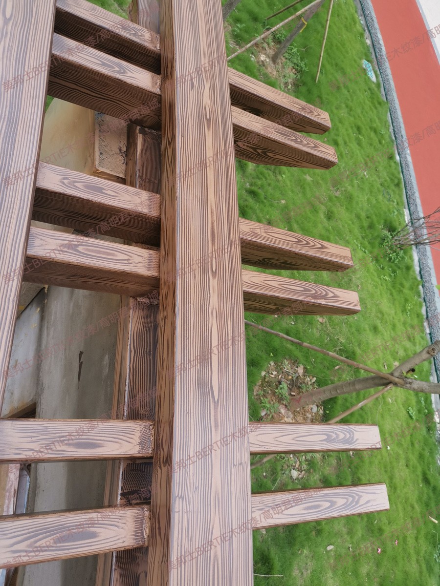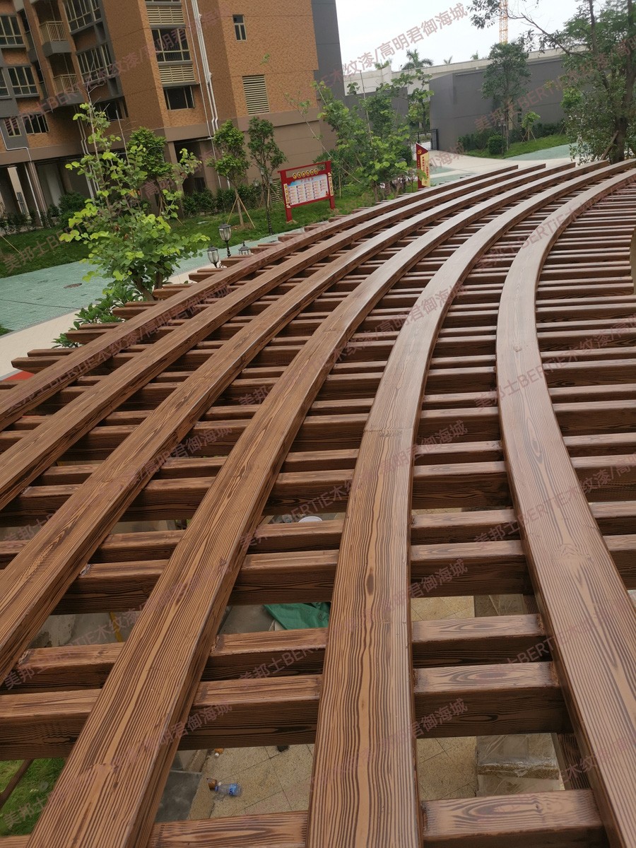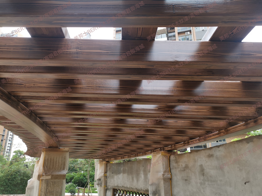 首頁 > 工程案例 > 鐵管木紋漆 > 高明君御海城鐵管廊架木紋漆