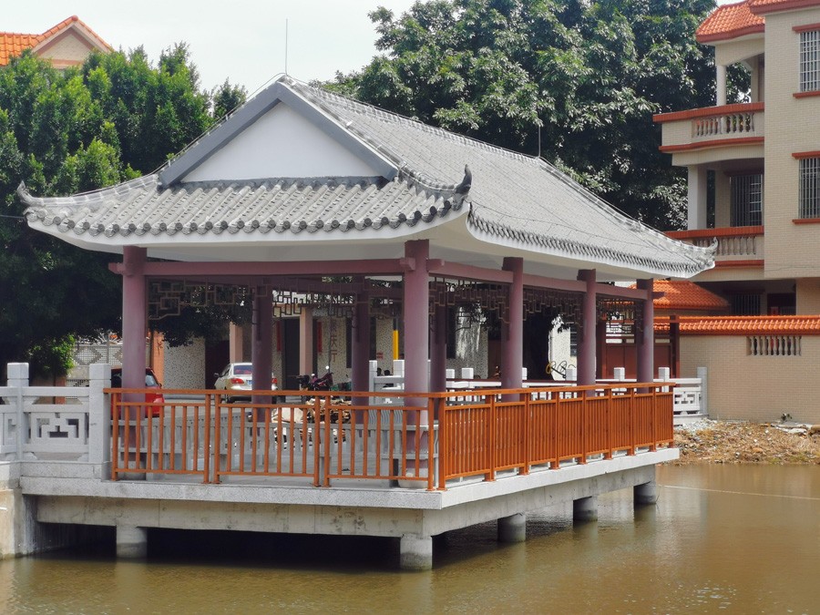 良登羅氏仲房祠長樂亭鍍鋅管欄桿木紋漆