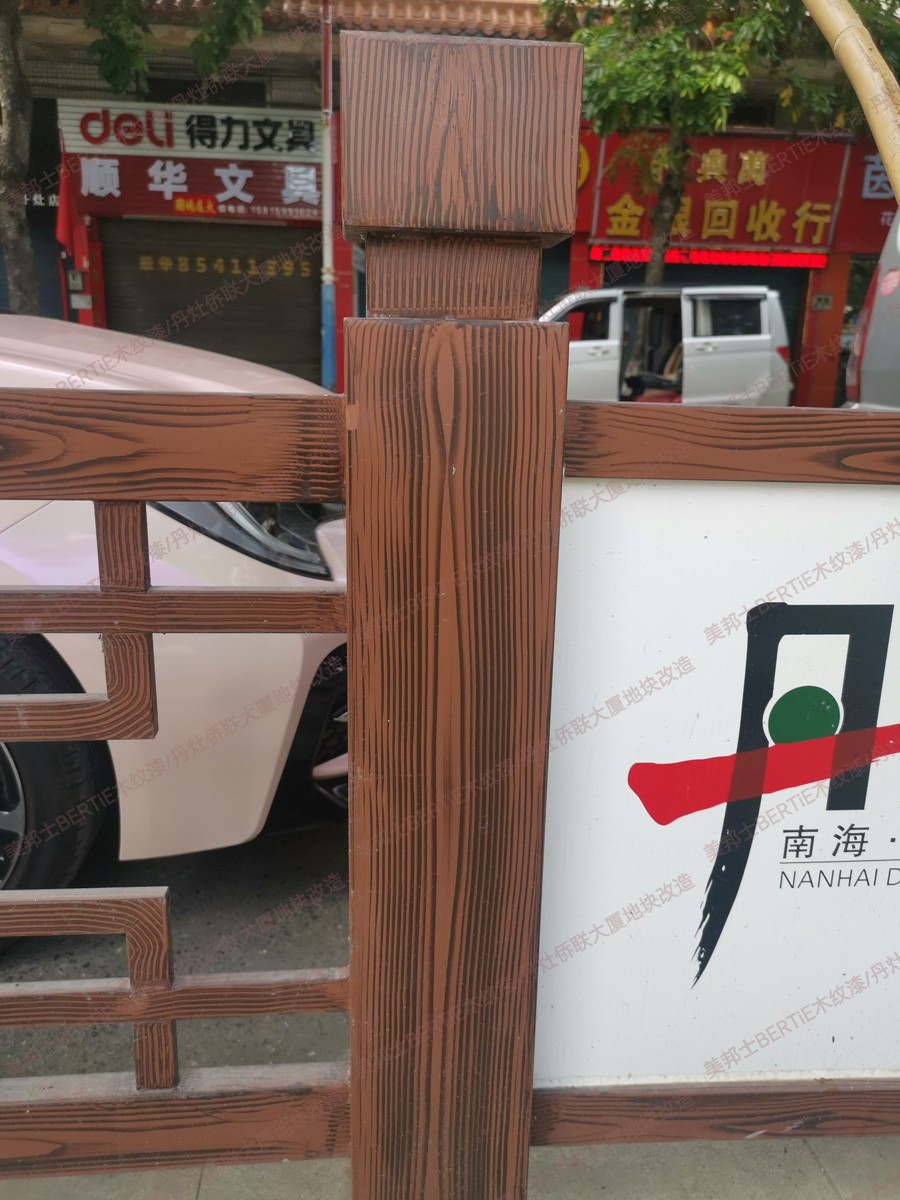 佛山丹灶僑聯(lián)大廈益民廣場不銹鋼欄桿木紋漆
