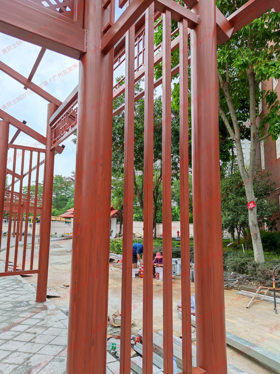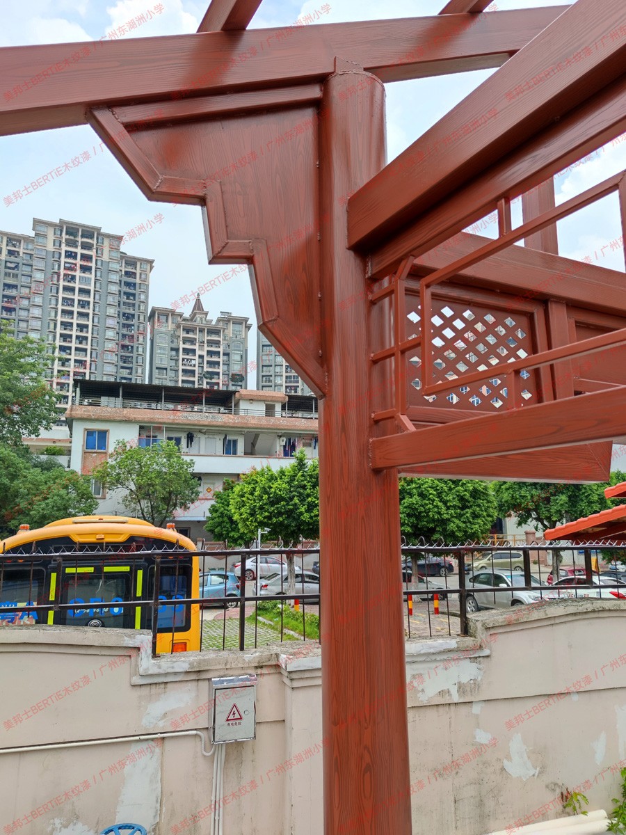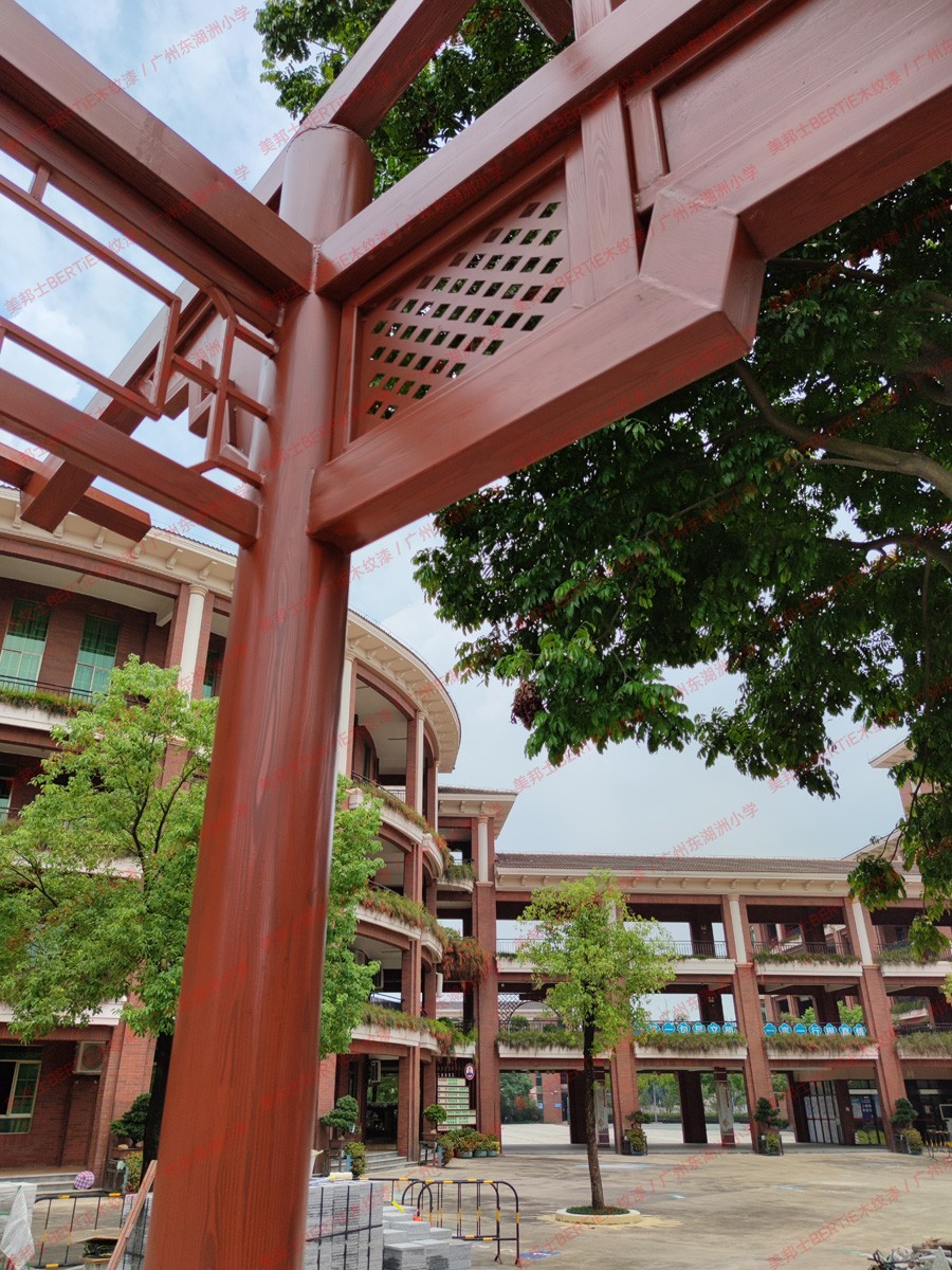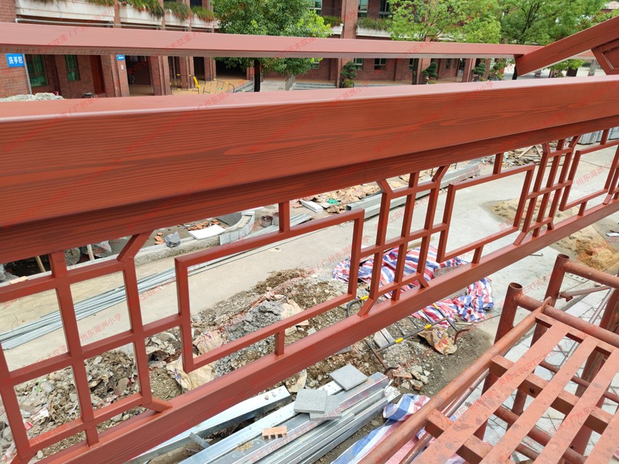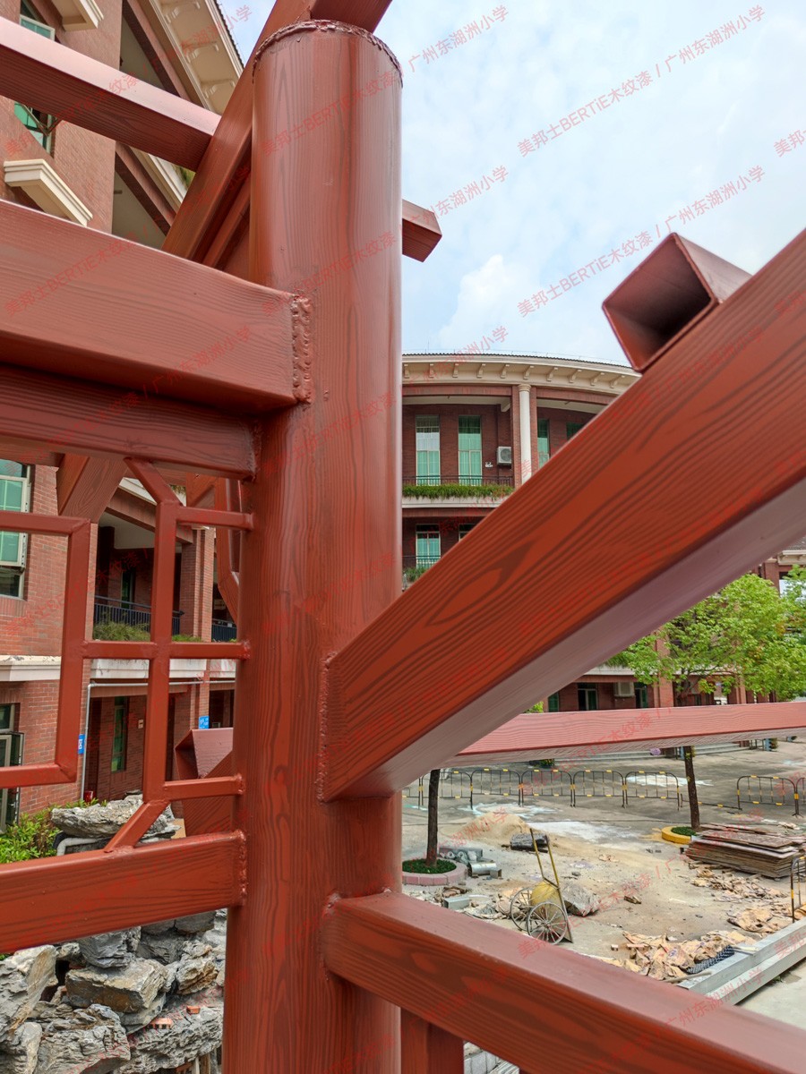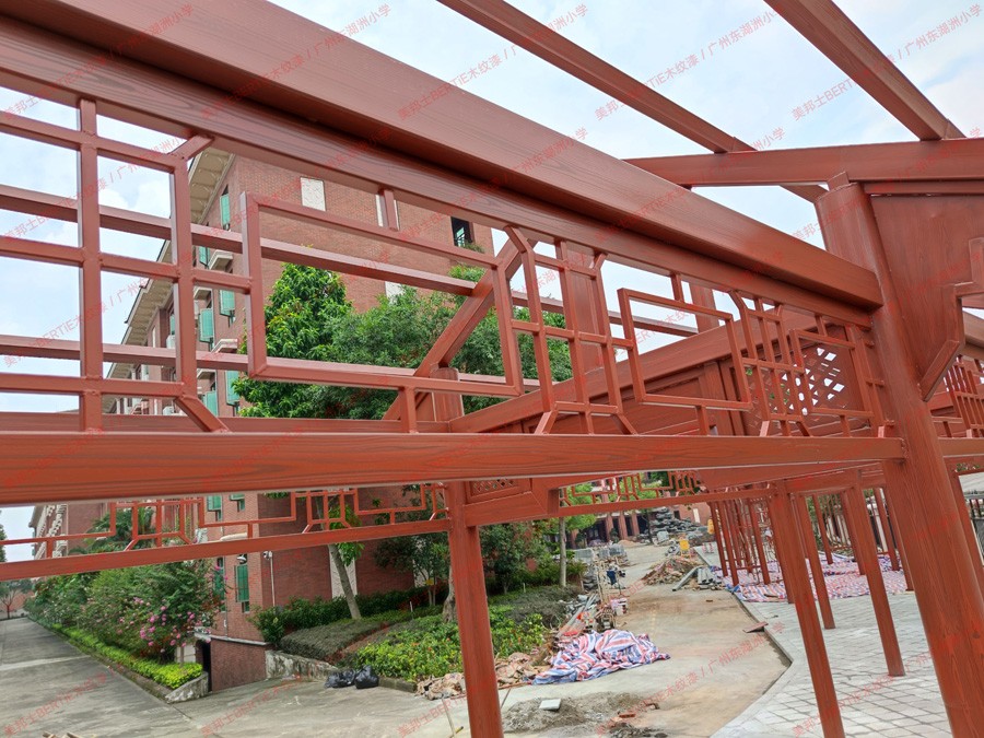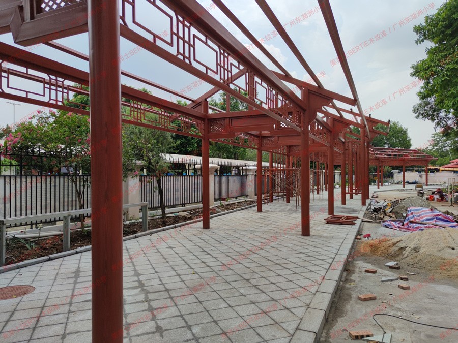 廣州東湖洲小學(xué)鍍鋅管廊架木紋漆