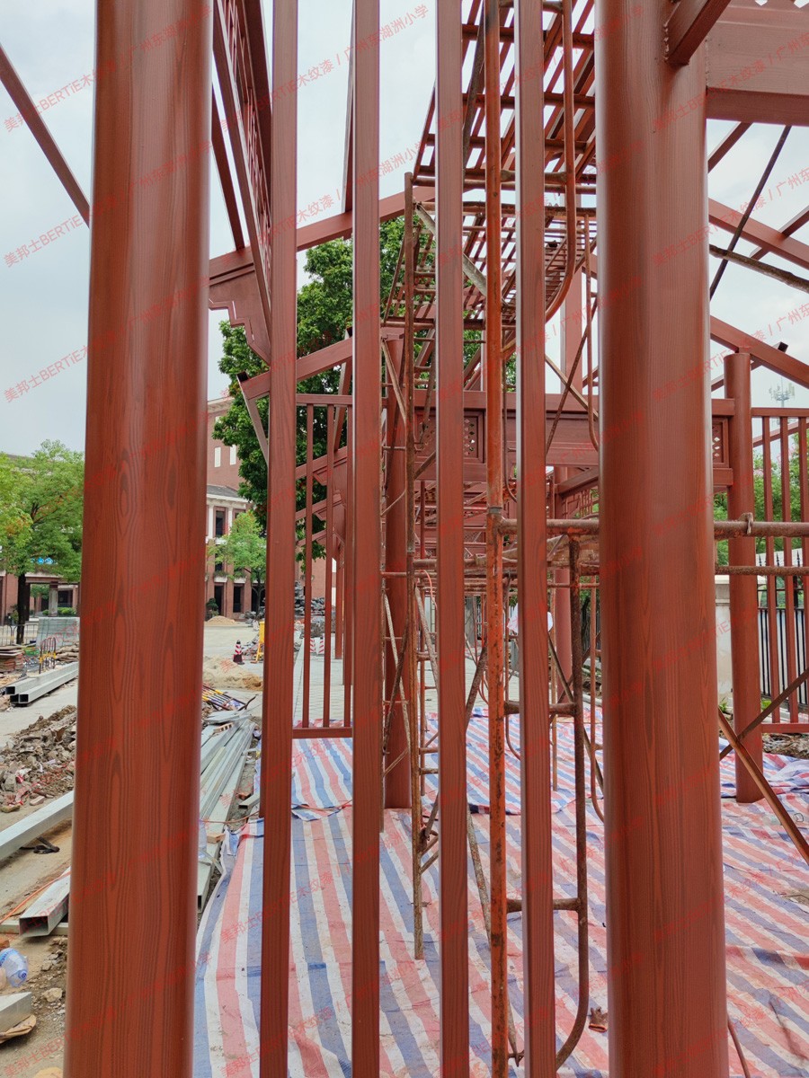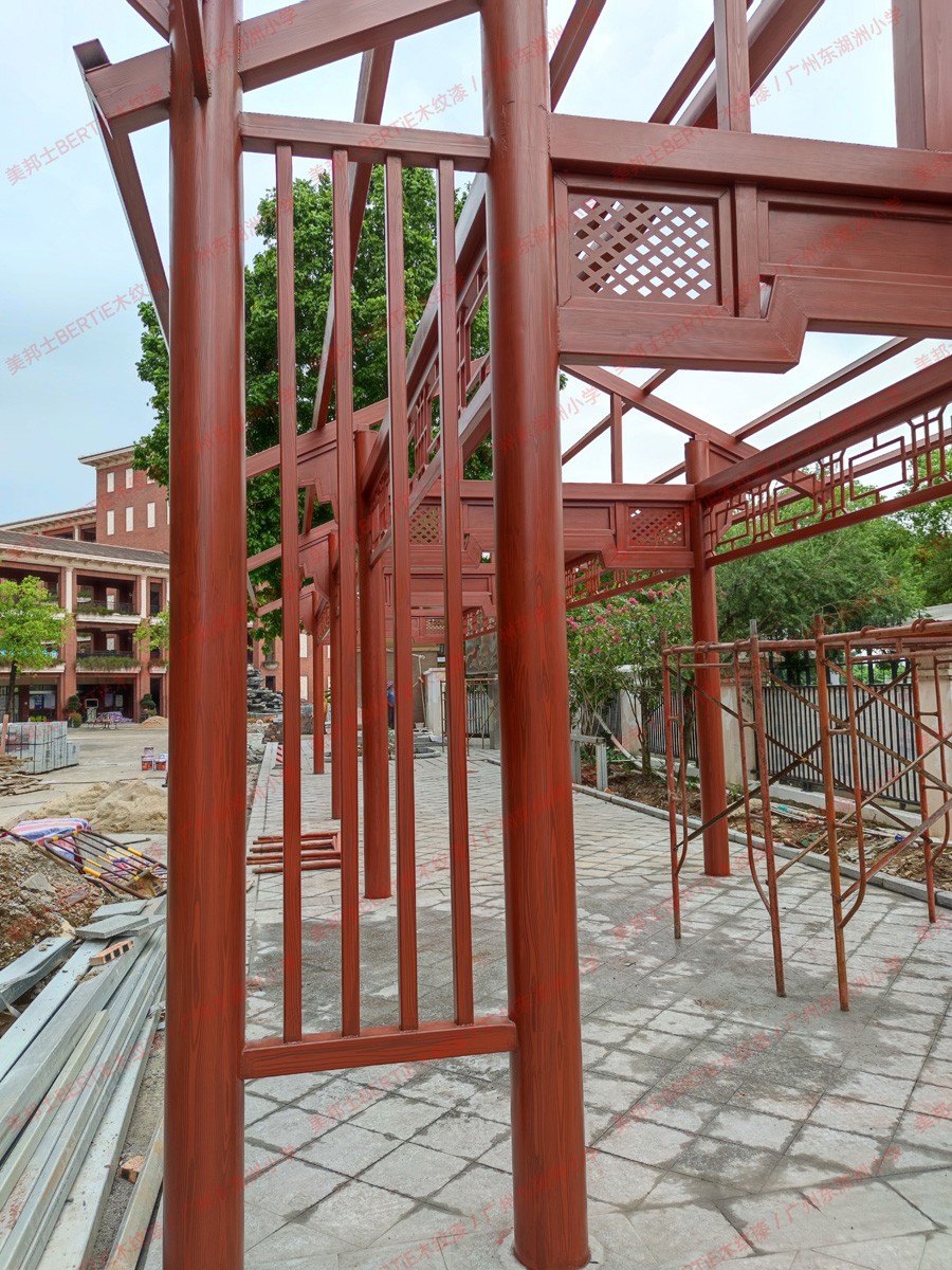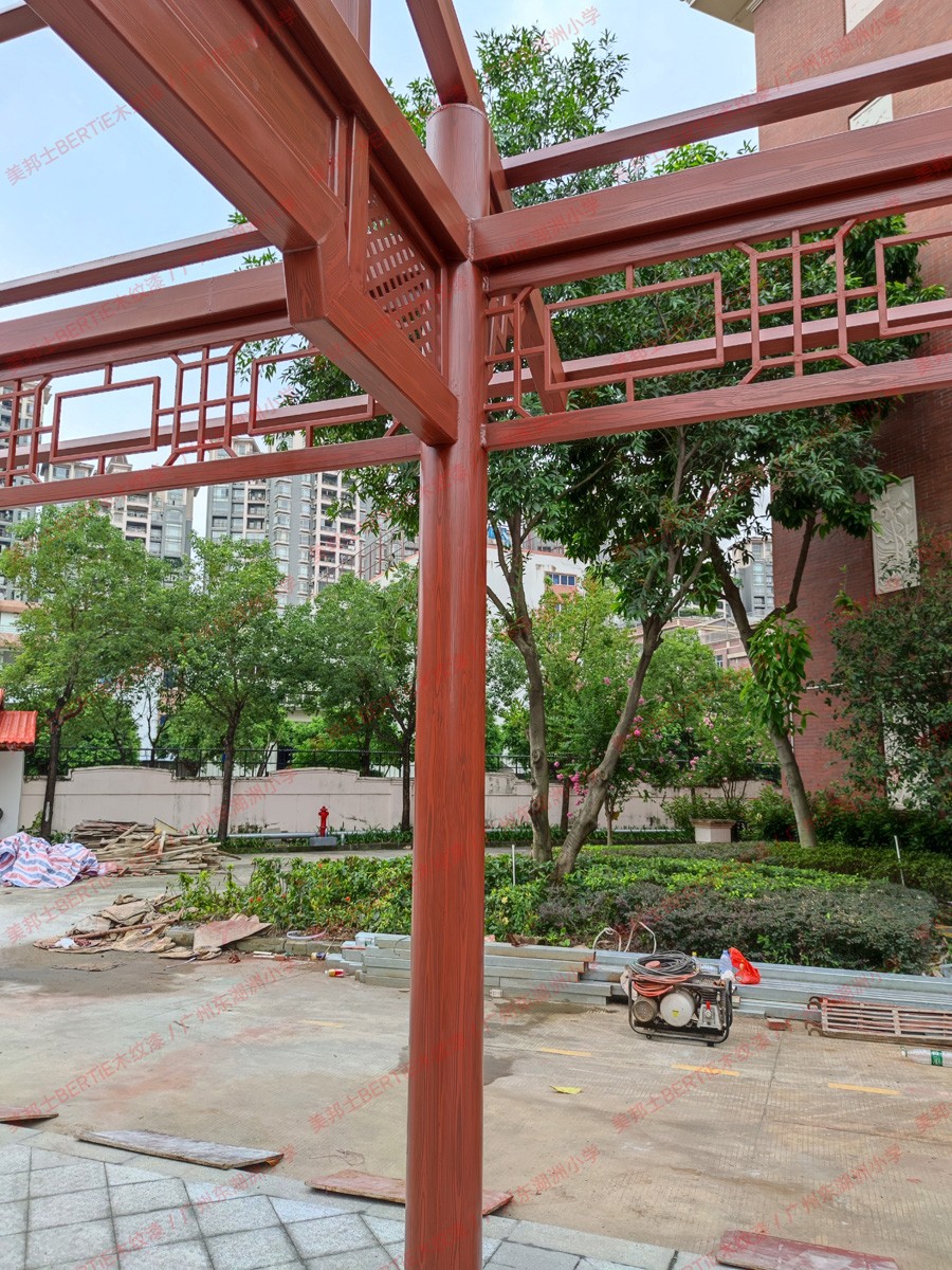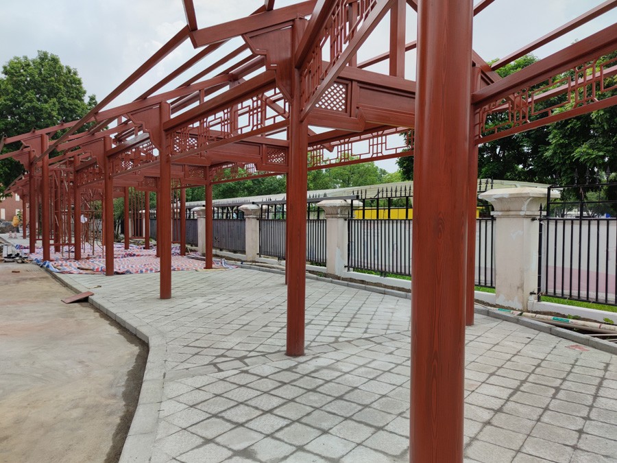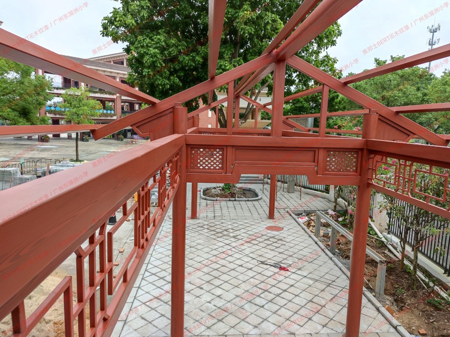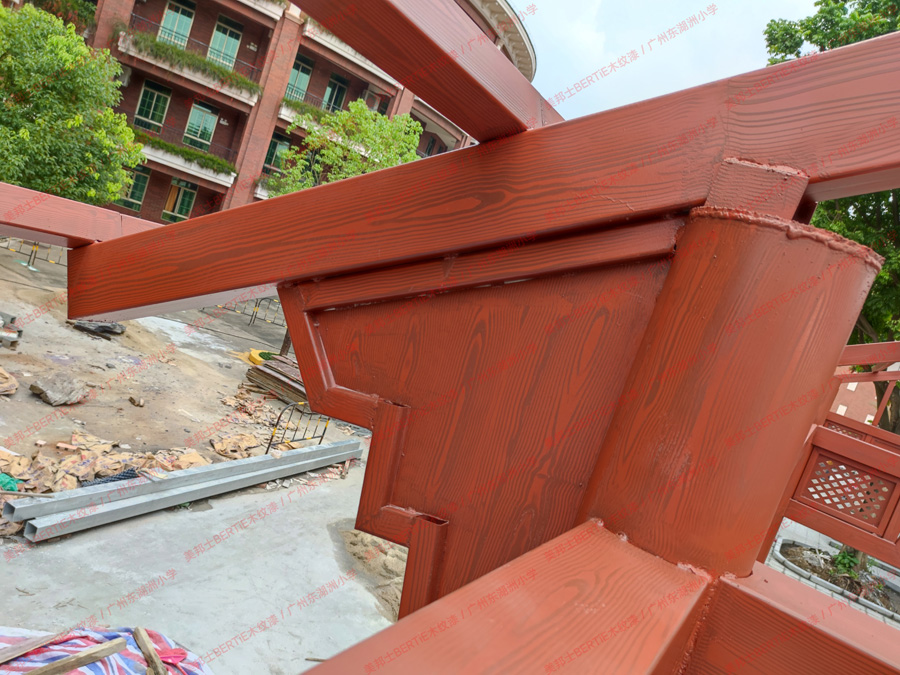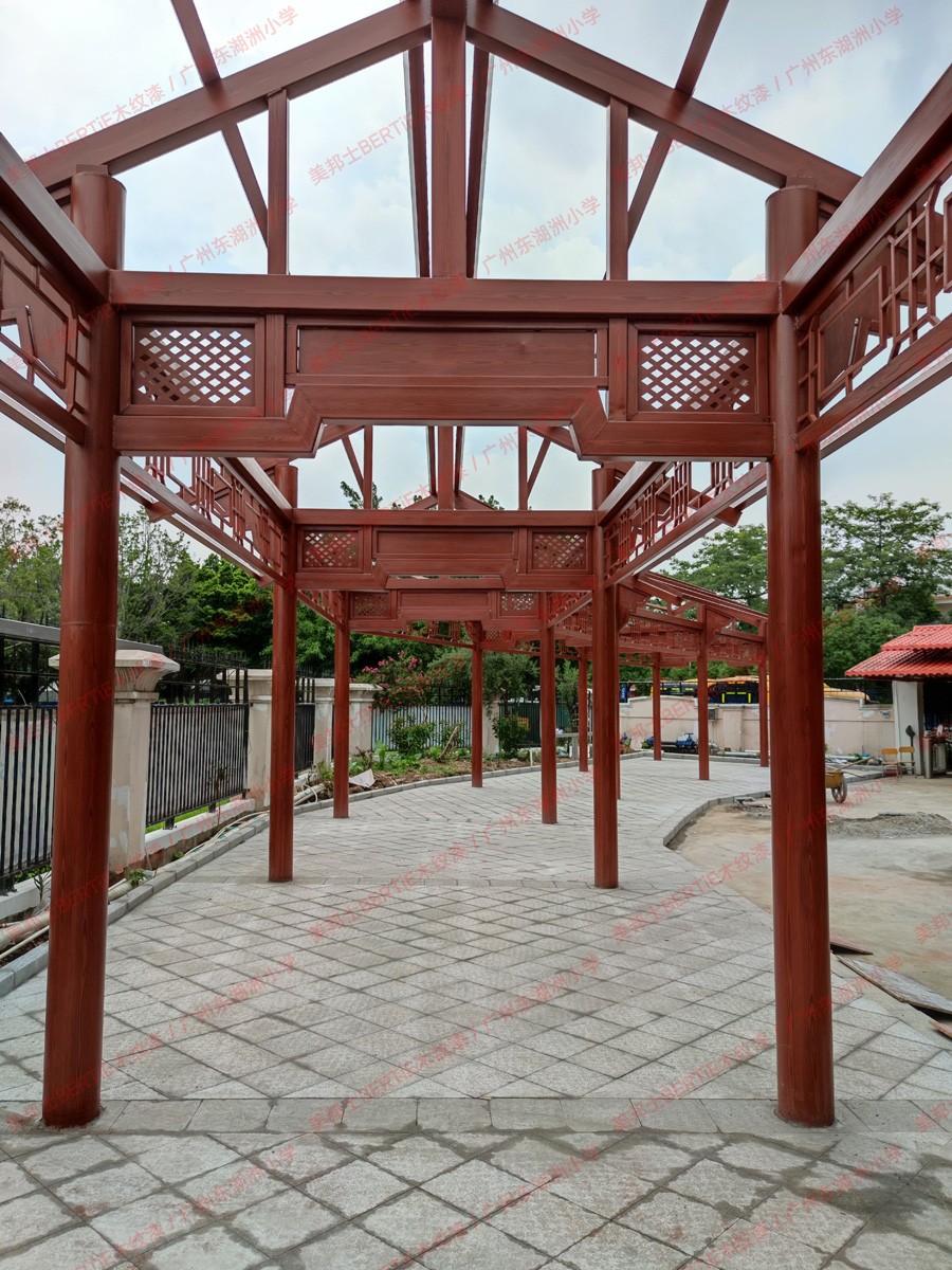 廣州東湖洲小學(xué)鍍鋅管廊架木紋漆
