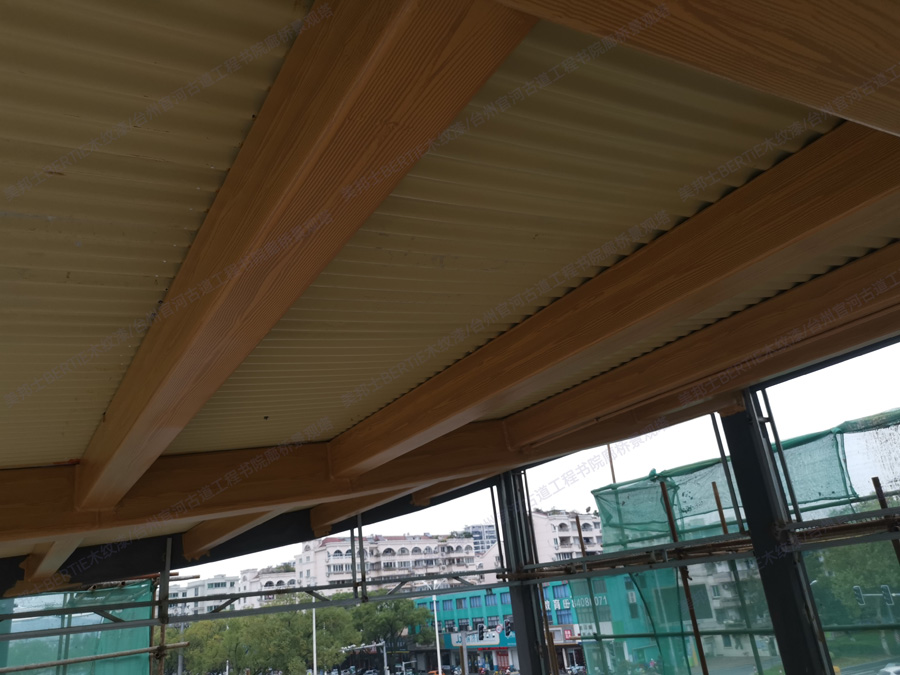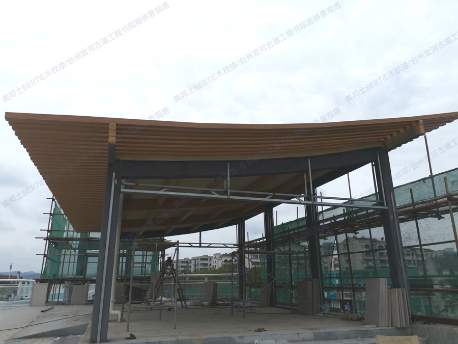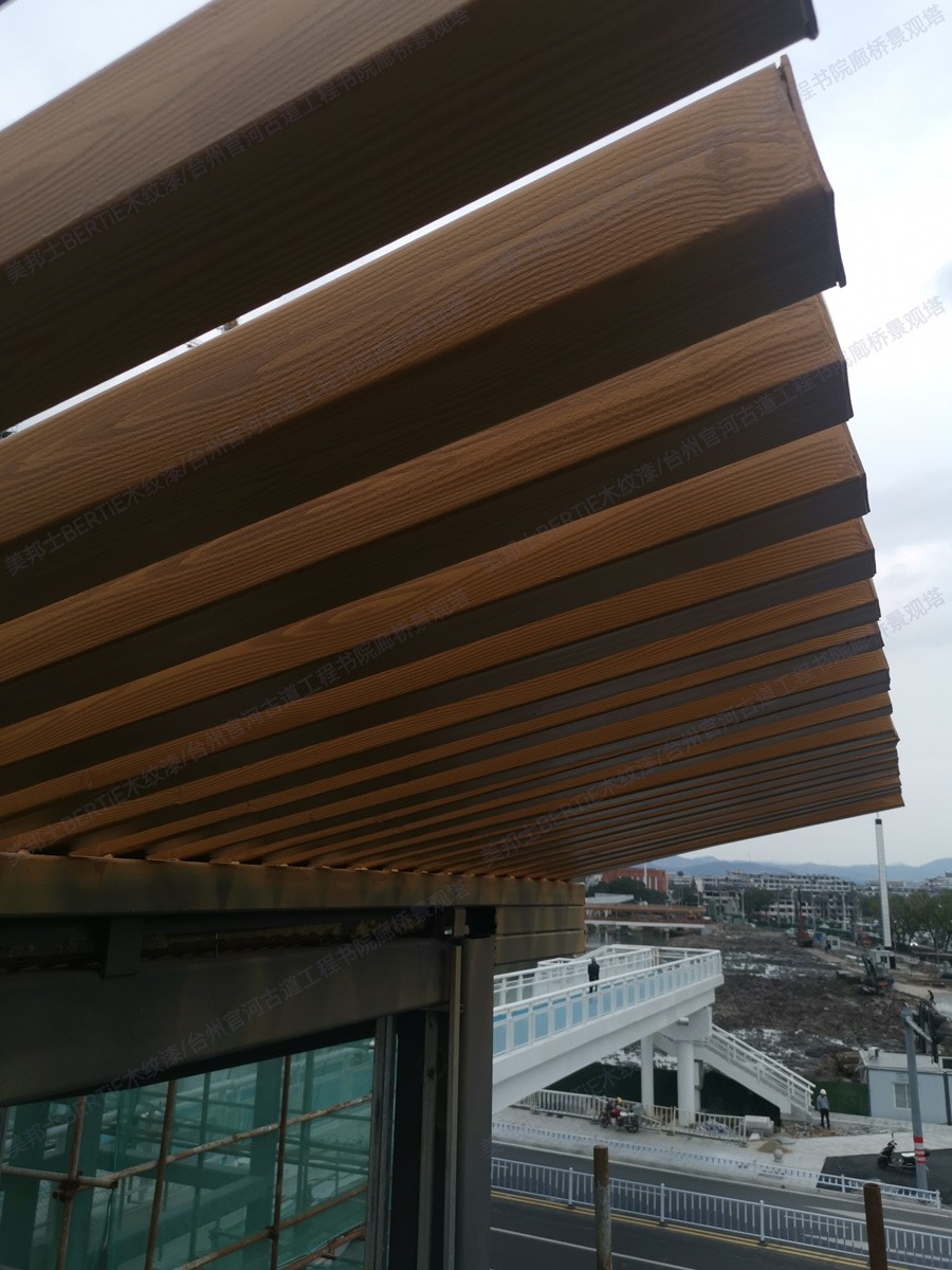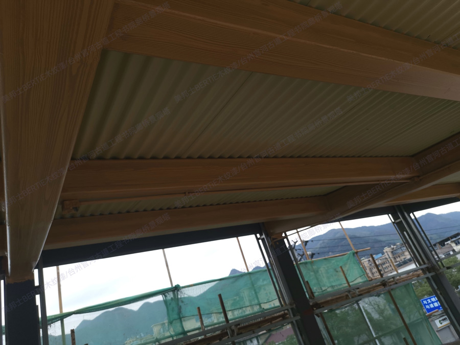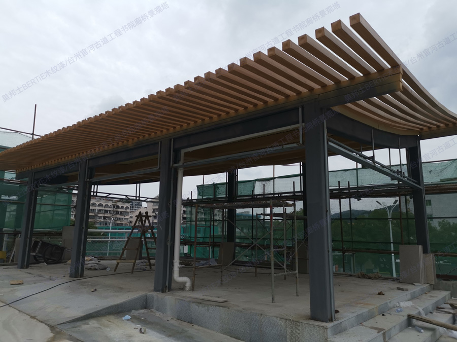 臺州書院廊橋景觀塔鍍鋅管木紋漆