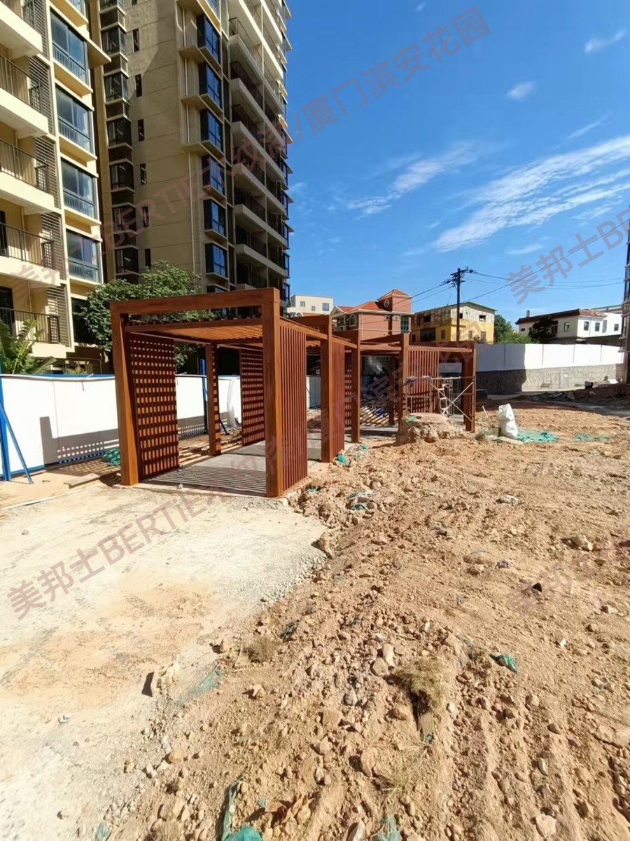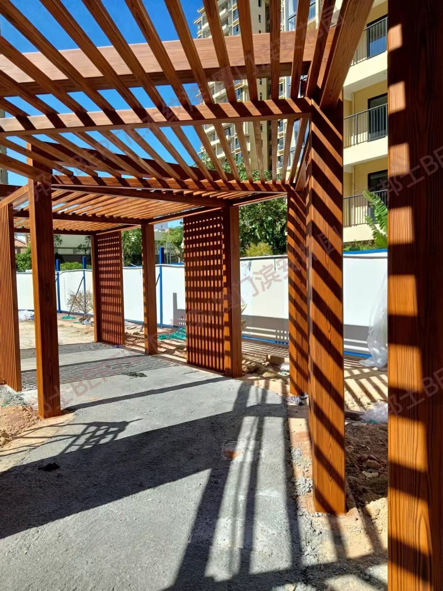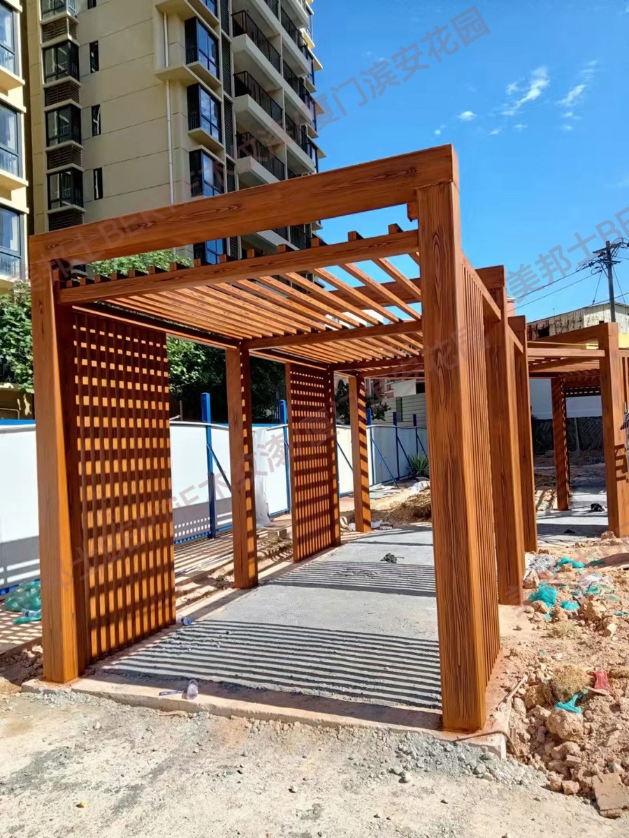 首頁 > 工程案例 > 鍍鋅管木紋漆 > 廈門濱安花園鍍鋅管廊架木紋漆