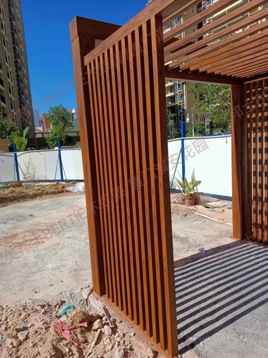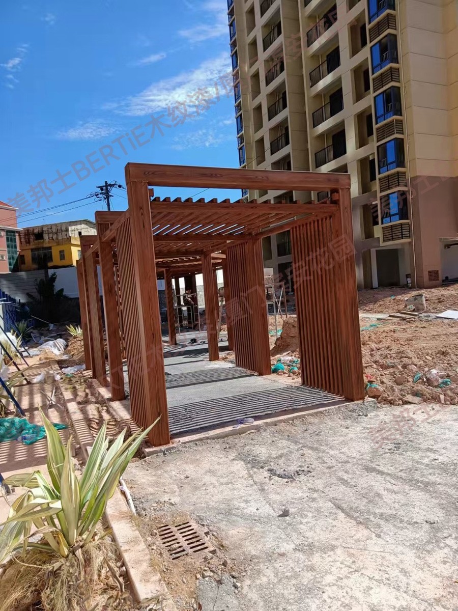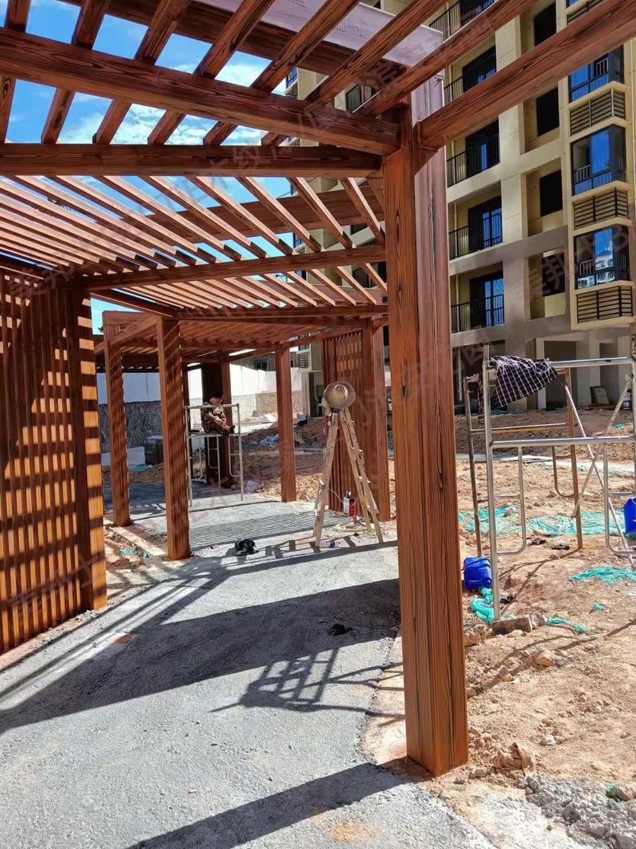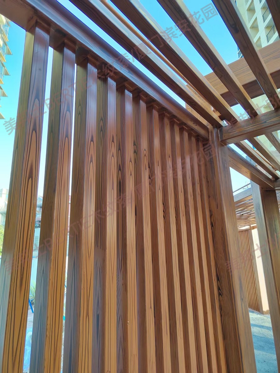 首頁 > 工程案例 > 鍍鋅管木紋漆 > 廈門濱安花園鍍鋅管廊架木紋漆