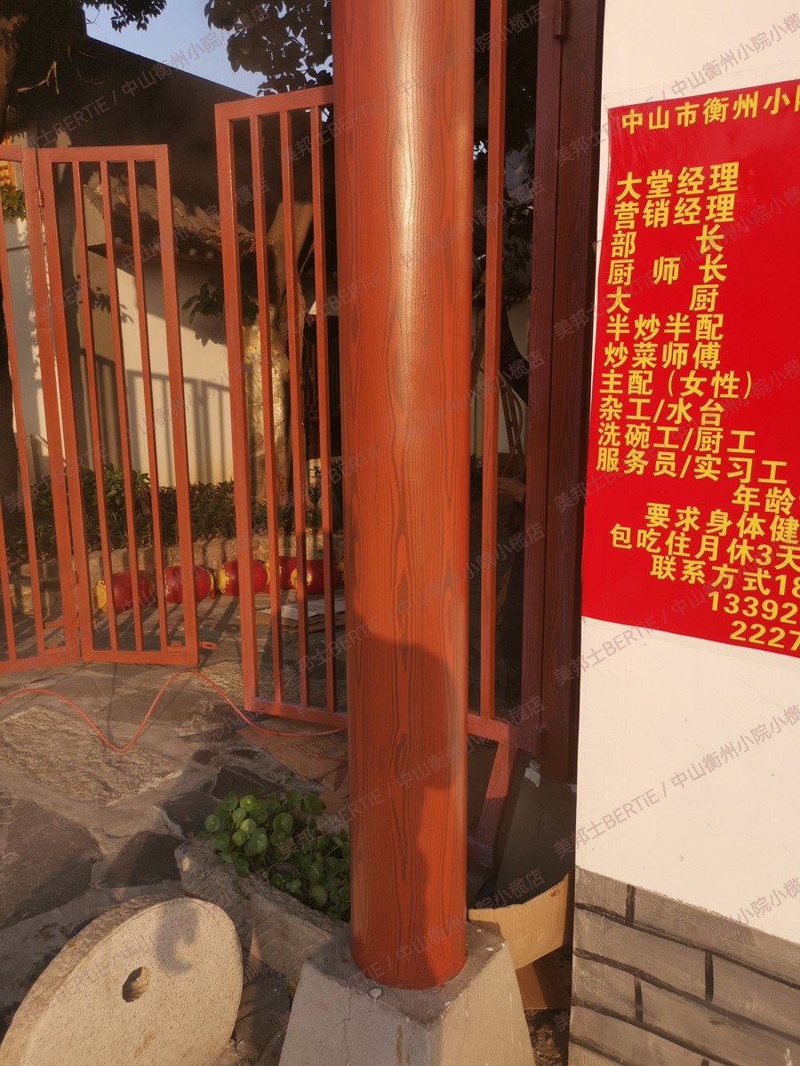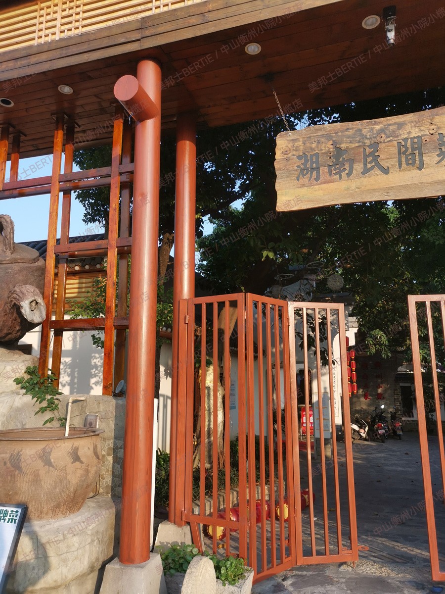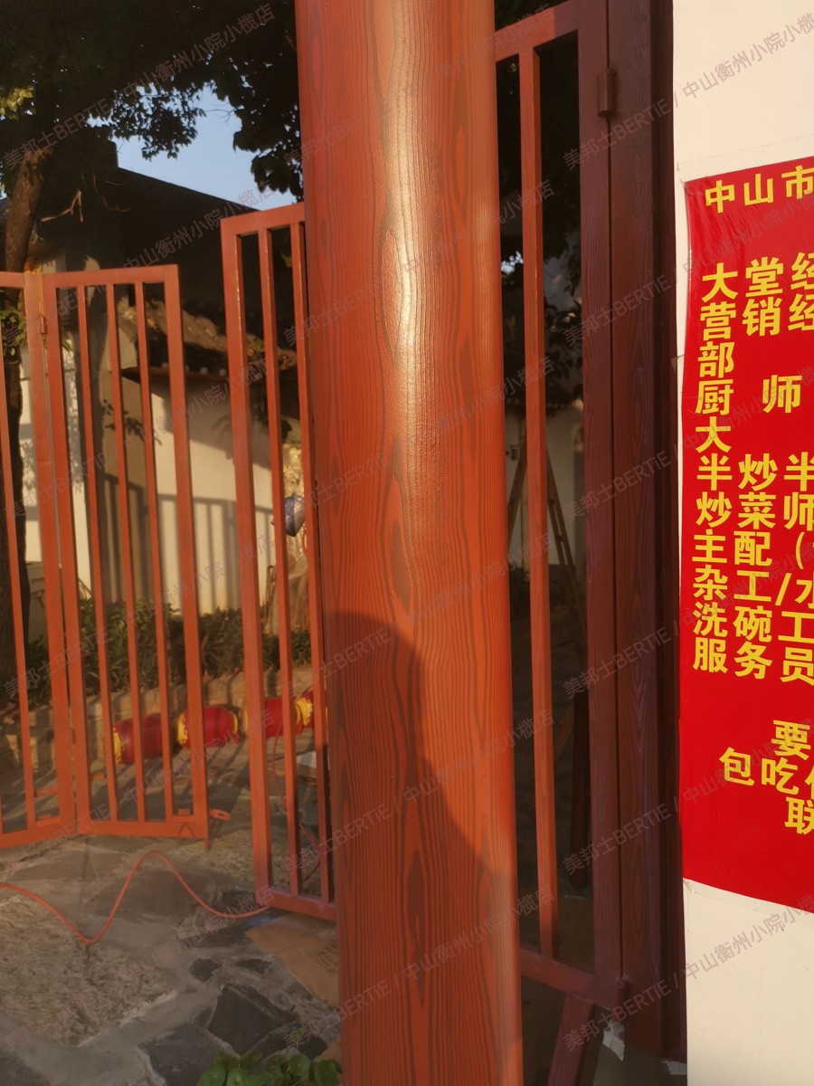 首頁 > 工程案例 > 鍍鋅管木紋漆 > 衡州小院小欖總店不銹鋼木紋漆