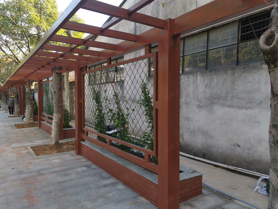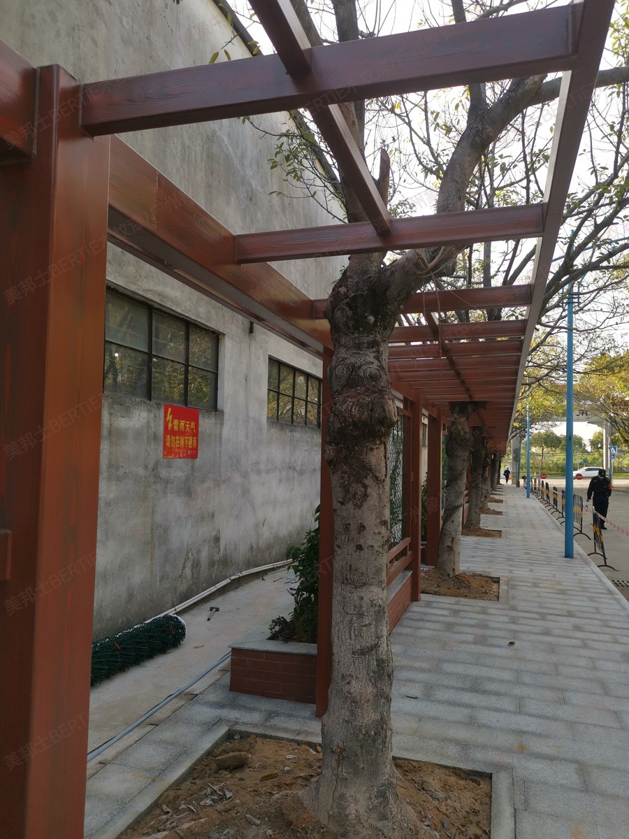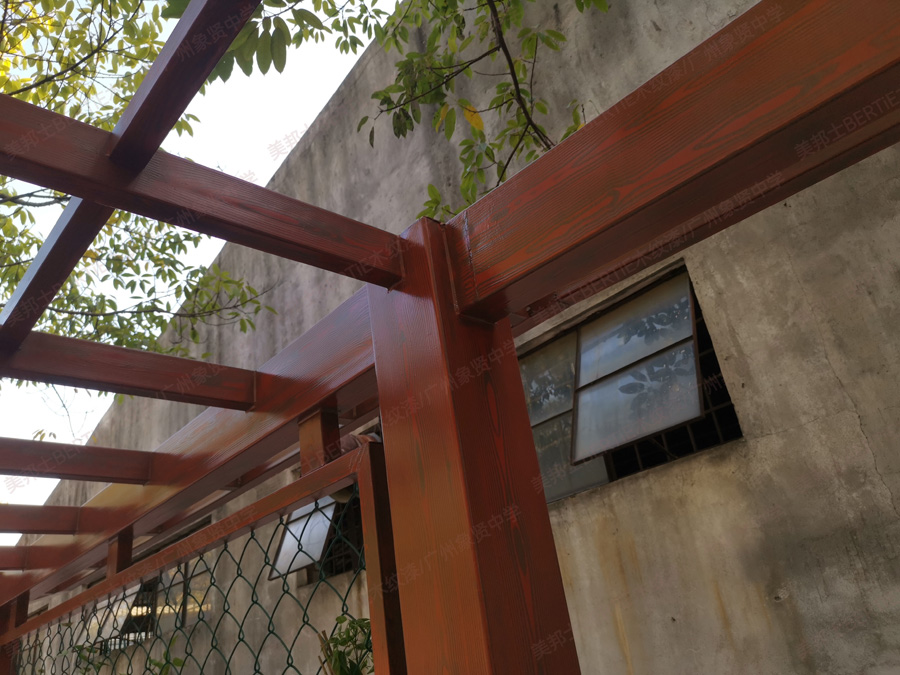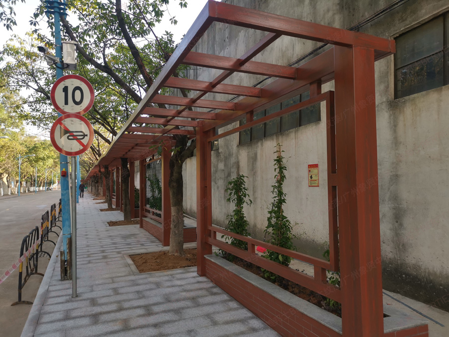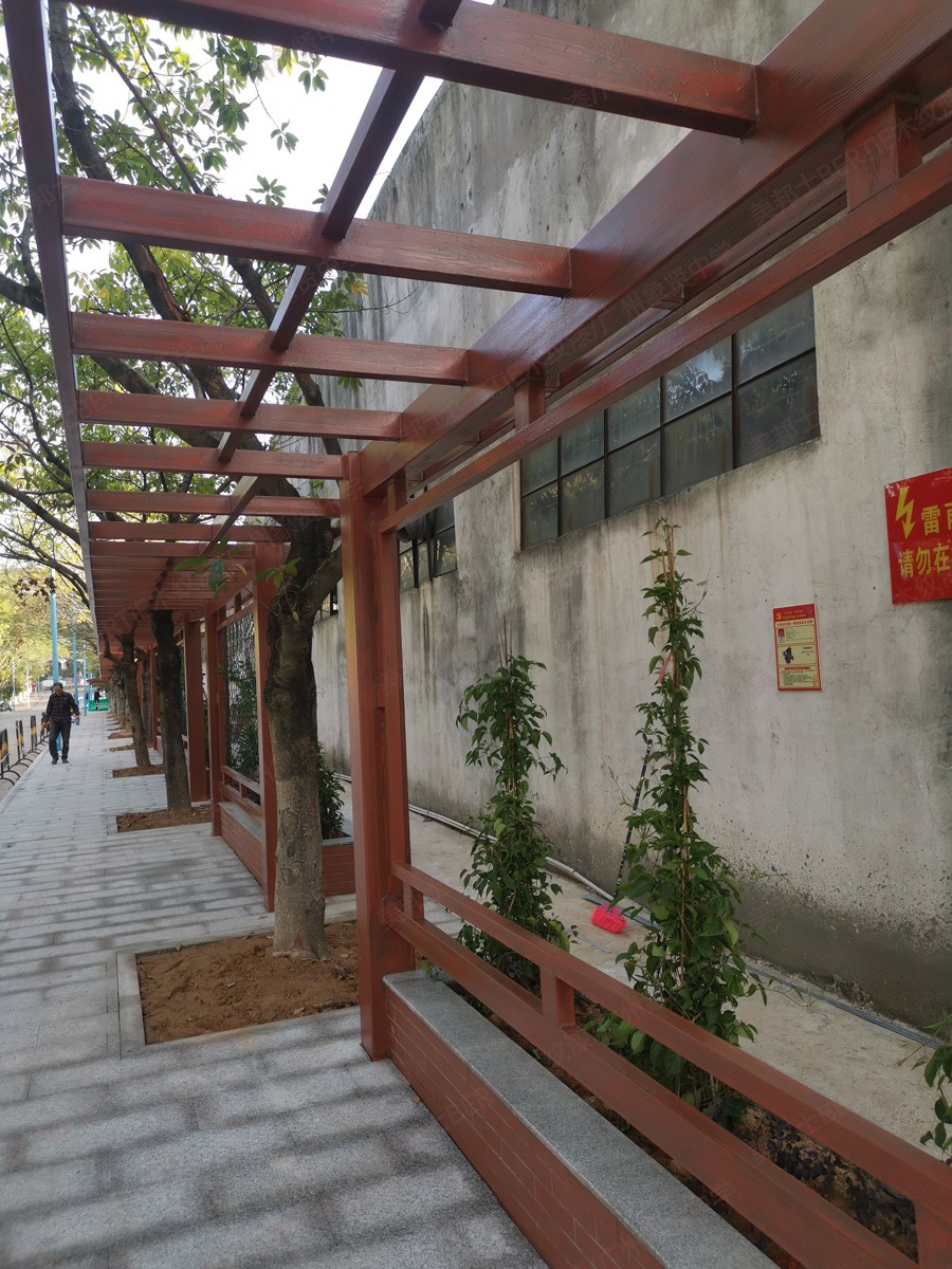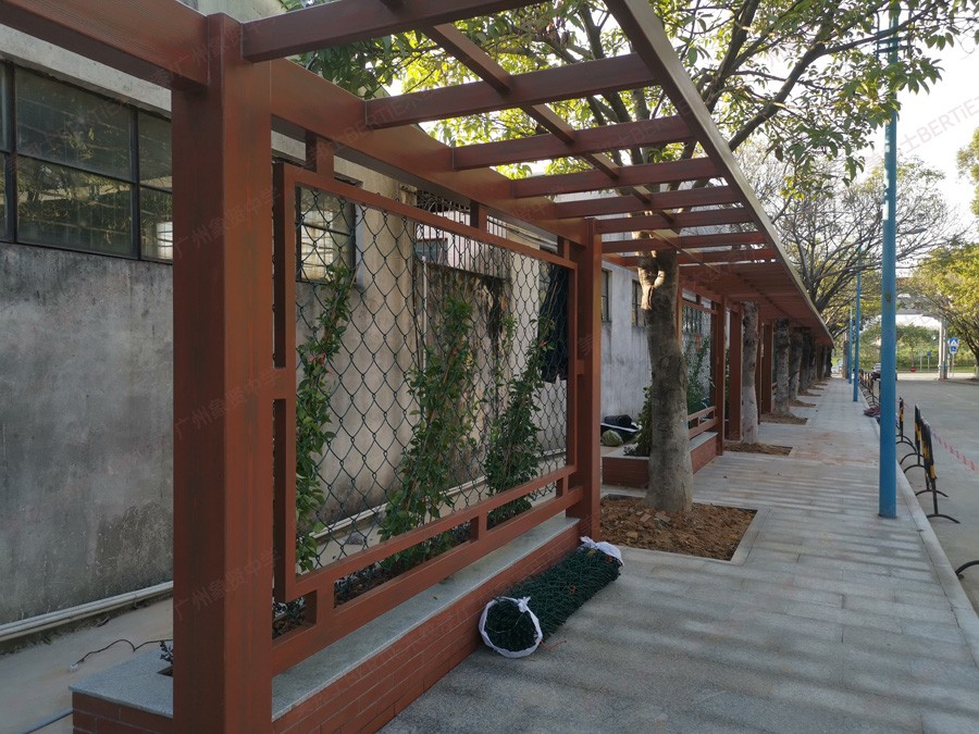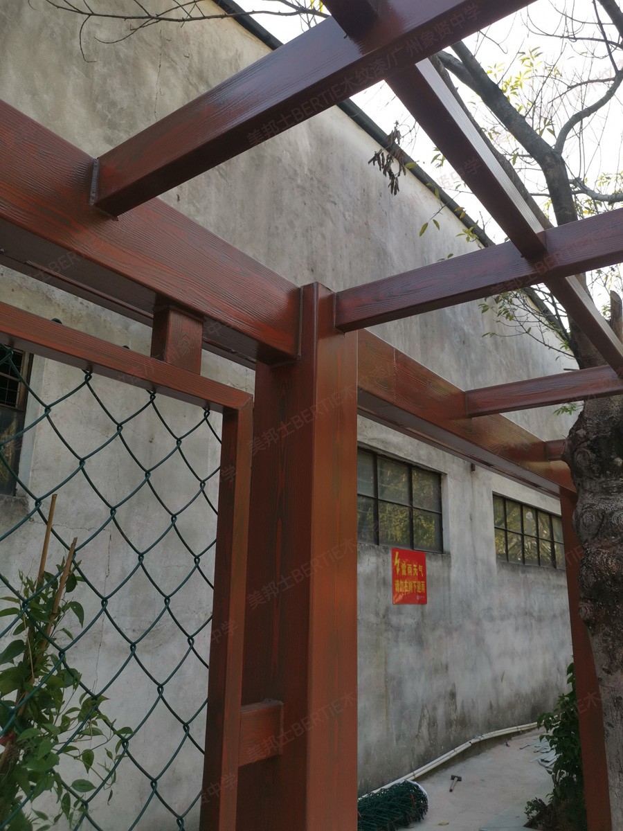 廣州象賢中學(xué)鐵管廊架木紋漆