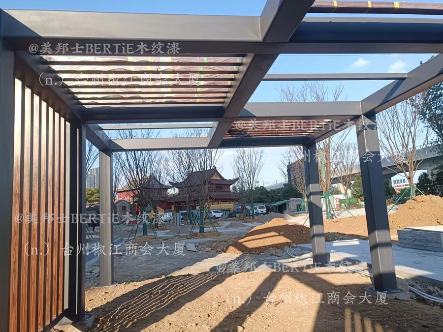 臺(tái)州椒江商會(huì)大廈鍍鋅廊架木紋漆