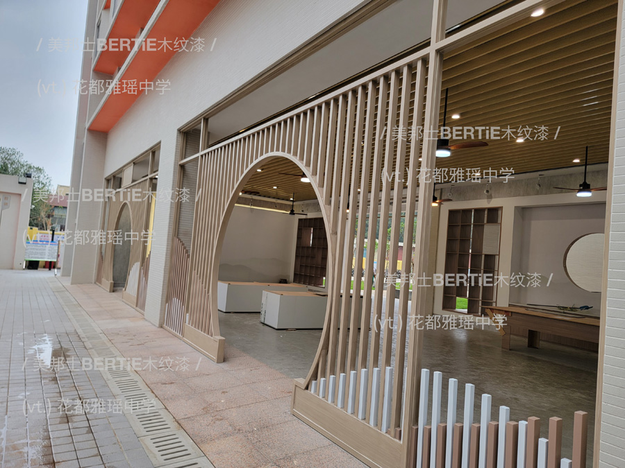 首頁 > 工程案例 > 鍍鋅管木紋漆 > 廣州雅遙中學鍍鋅管廊架木紋漆