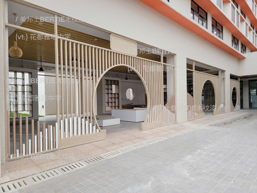 廣州雅遙中學鍍鋅管廊架木紋漆