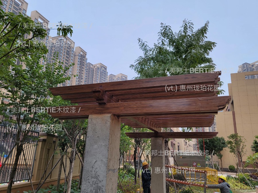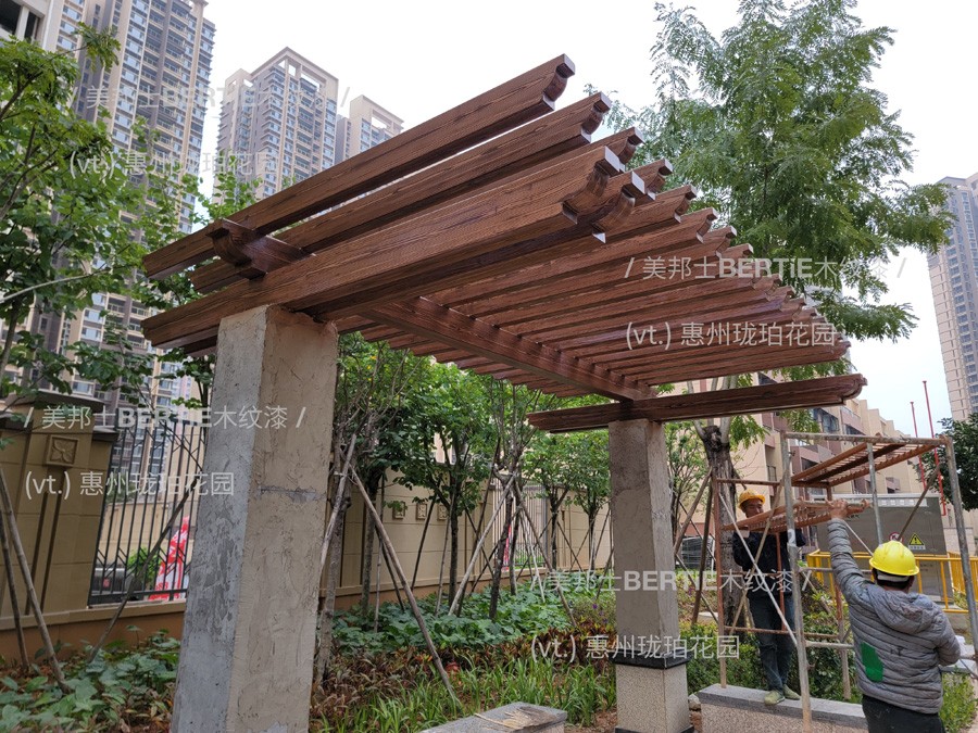 首頁 > 工程案例 > 鍍鋅管木紋漆 > 惠州瓏珀花園鍍鋅管葡萄架木紋漆