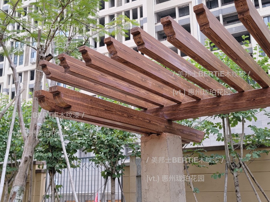 惠州瓏珀花園鍍鋅管葡萄架木紋漆