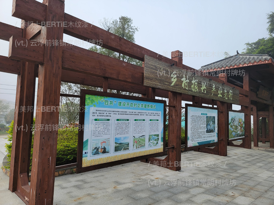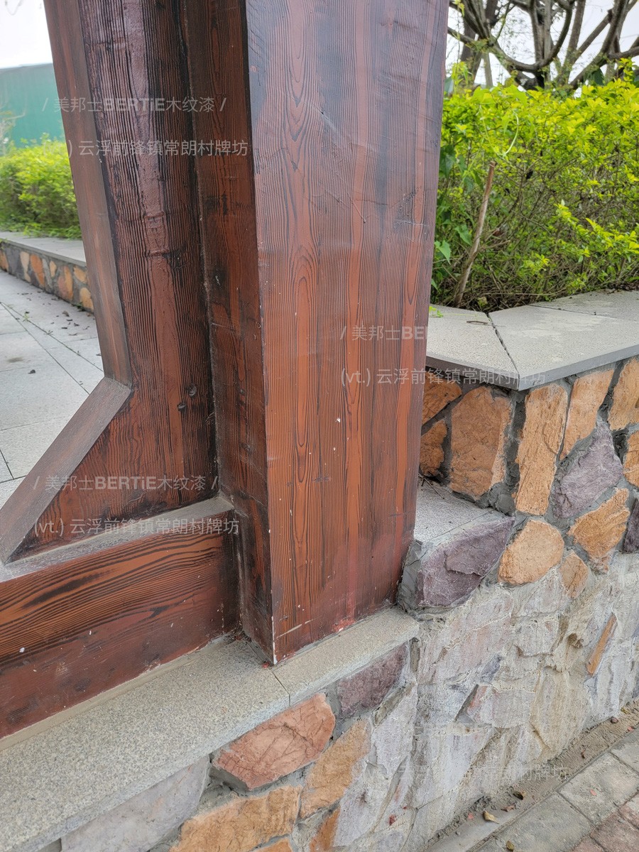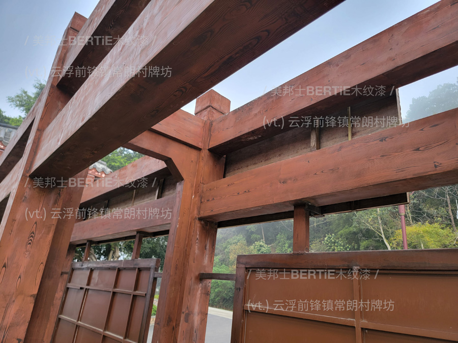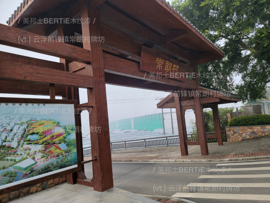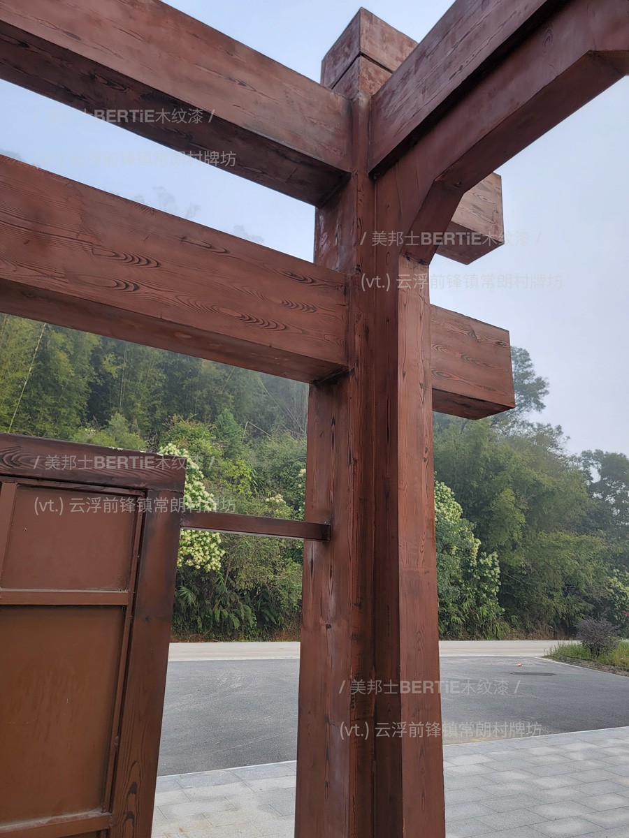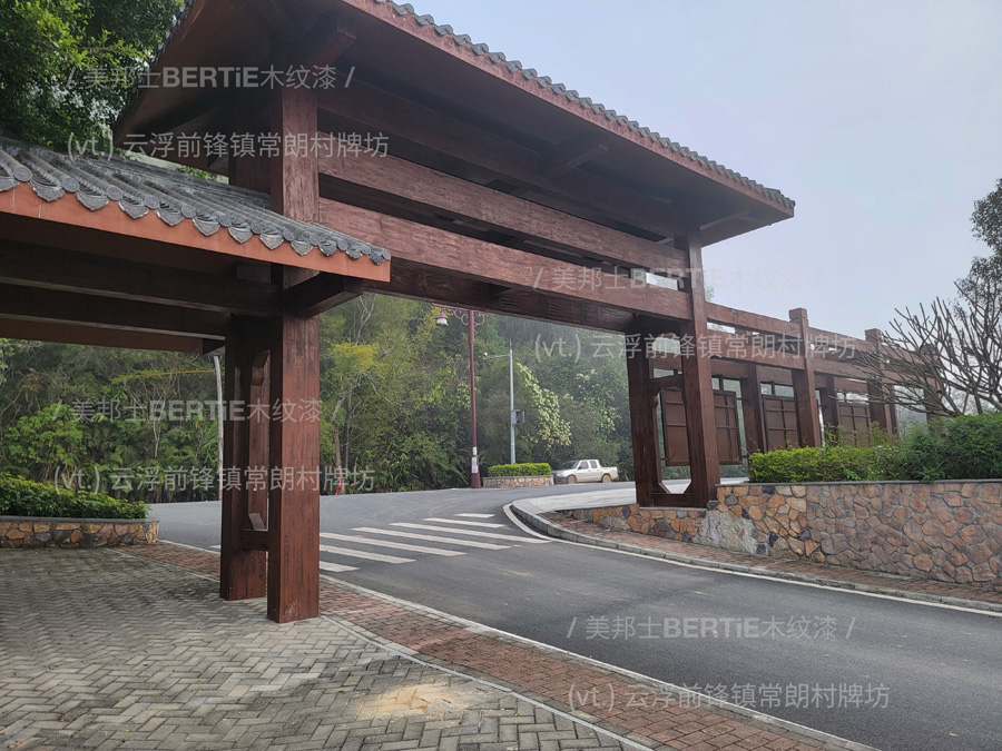 首頁 > 工程案例 > 混凝土木紋漆 > 云浮前鋒常朗村牌坊木紋漆