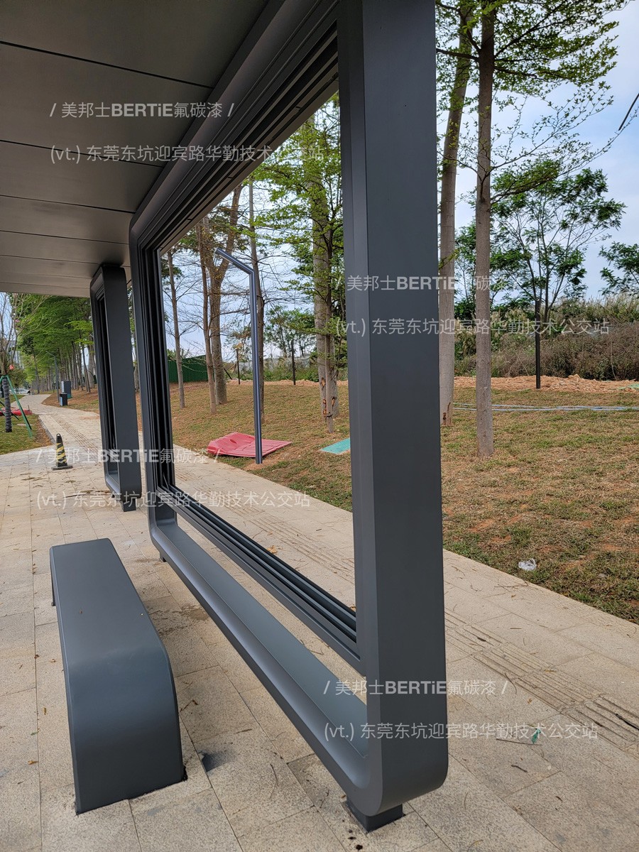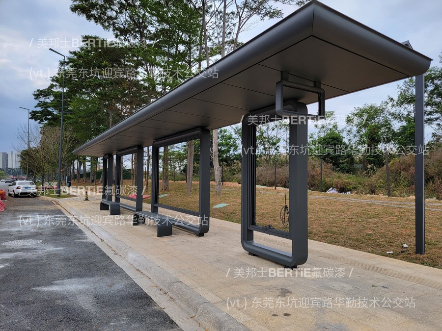 首頁 > 工程案例 > 鍍鋅管木紋漆 > 東莞東坑迎賓路公交站臺鍍鋅管水性氟漆