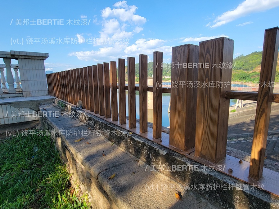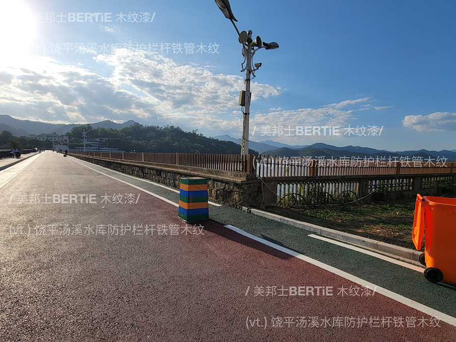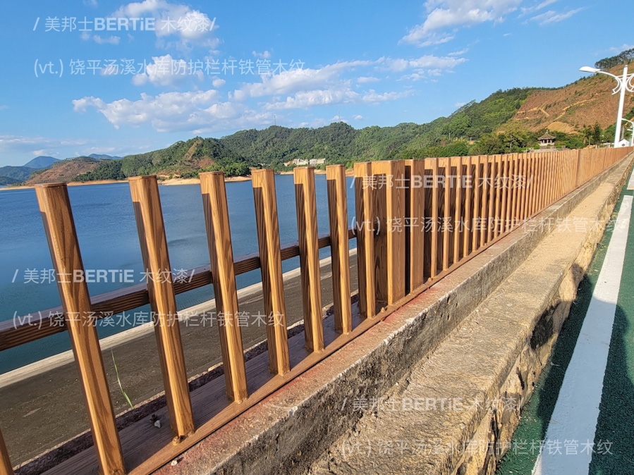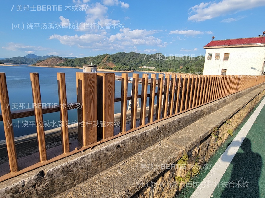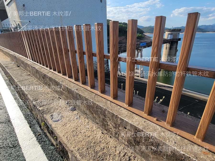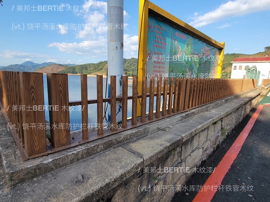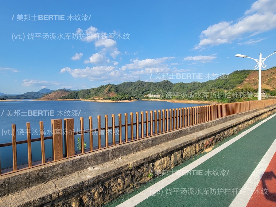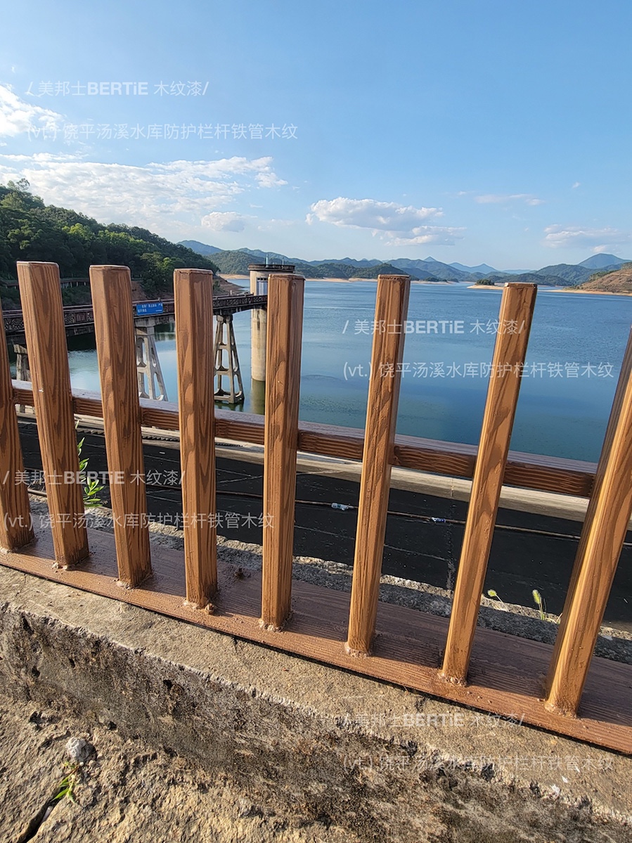 饒平縣湯溪水庫(kù)圍壩鐵管欄桿木紋漆
