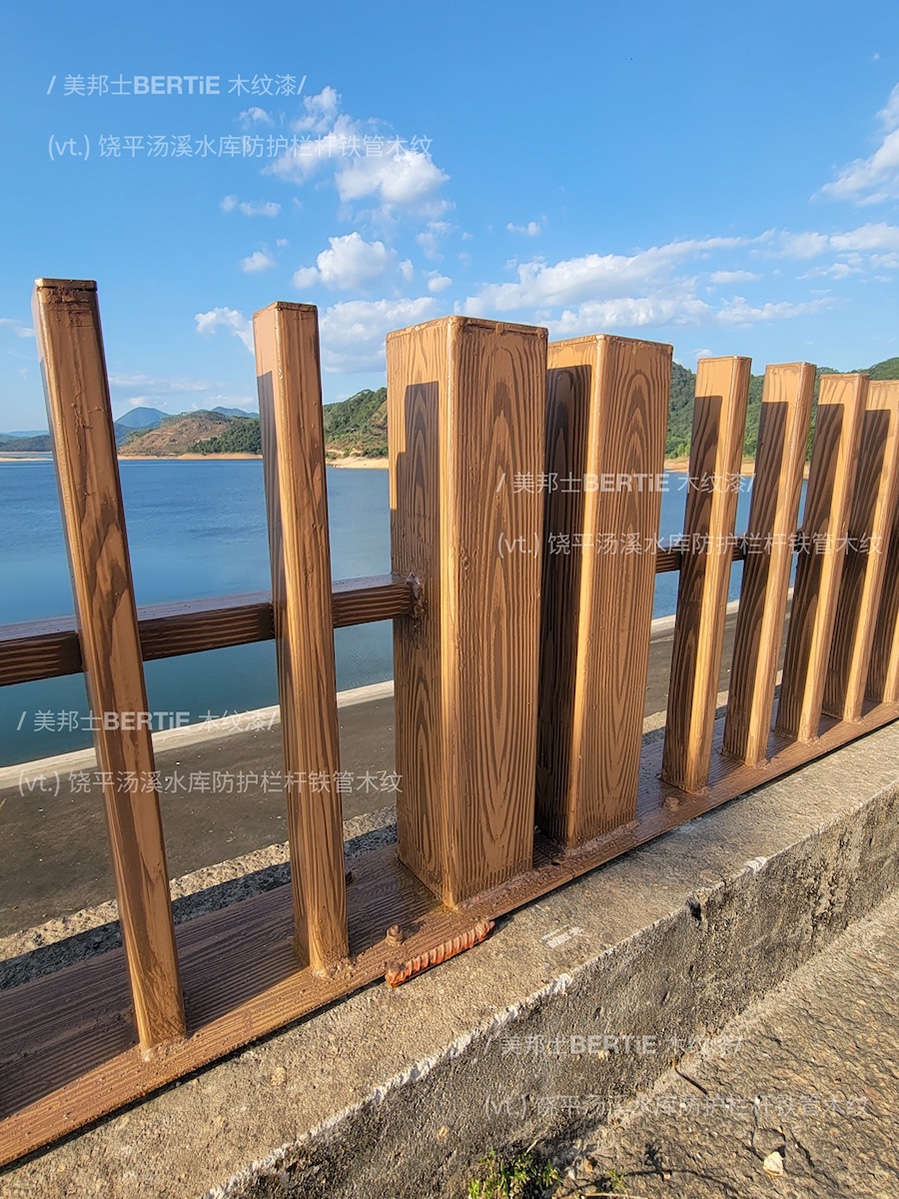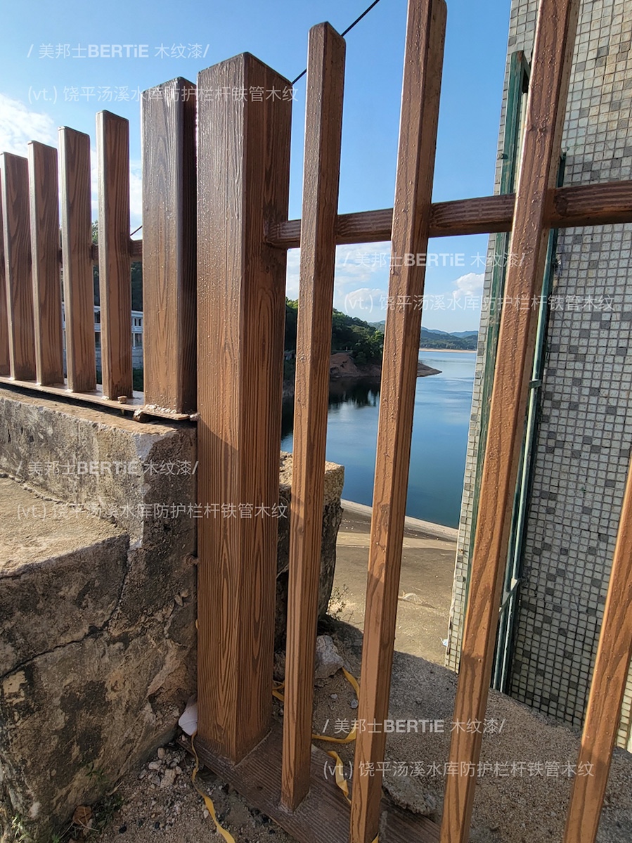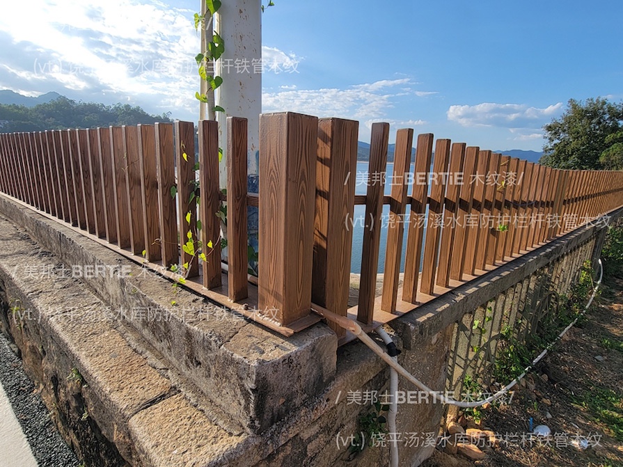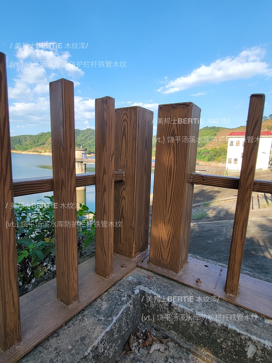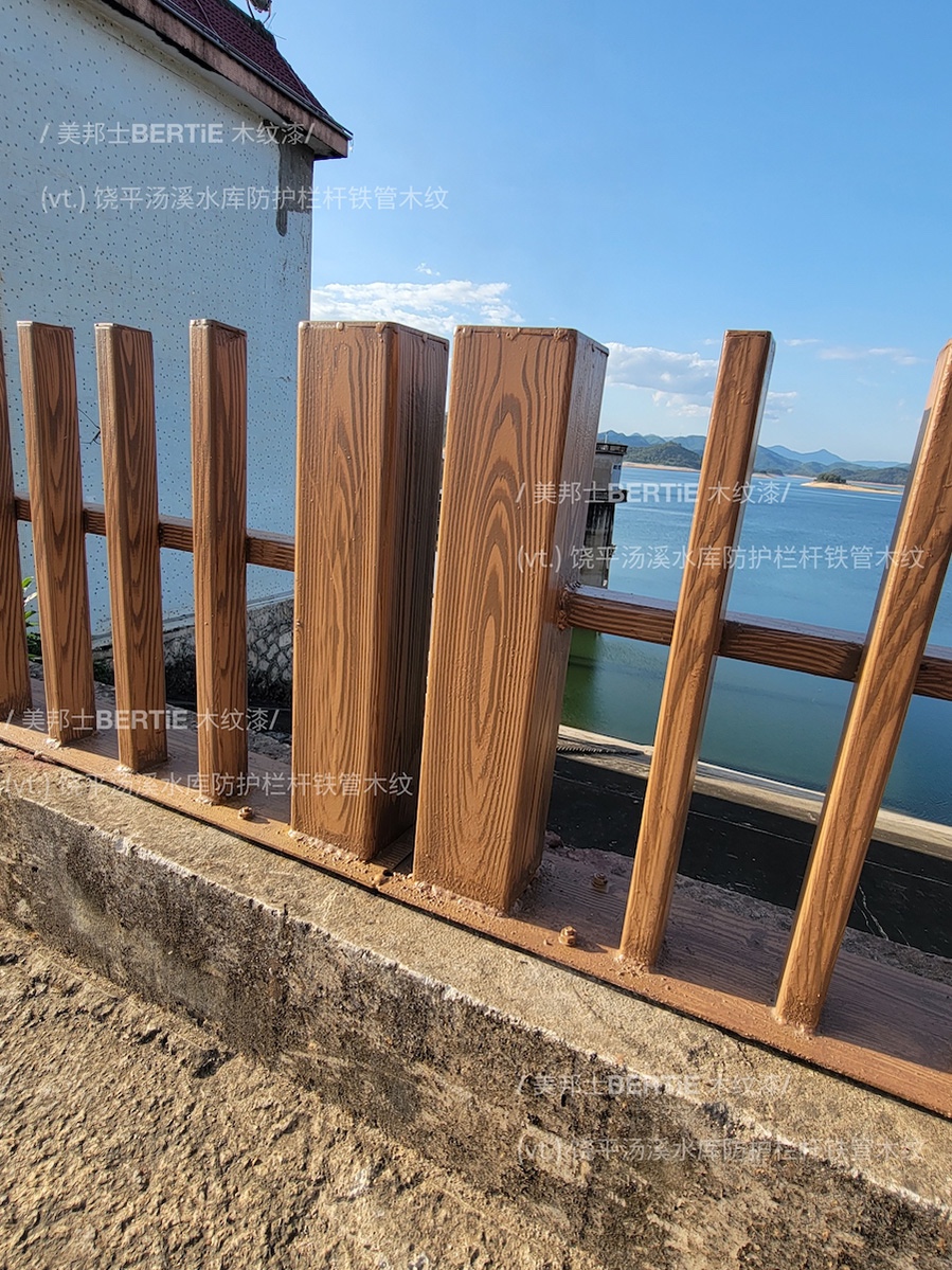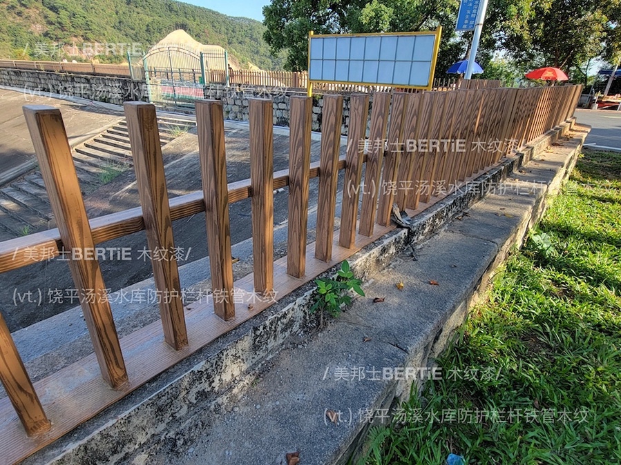 饒平縣湯溪水庫(kù)圍壩鐵管欄桿木紋漆