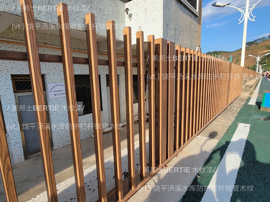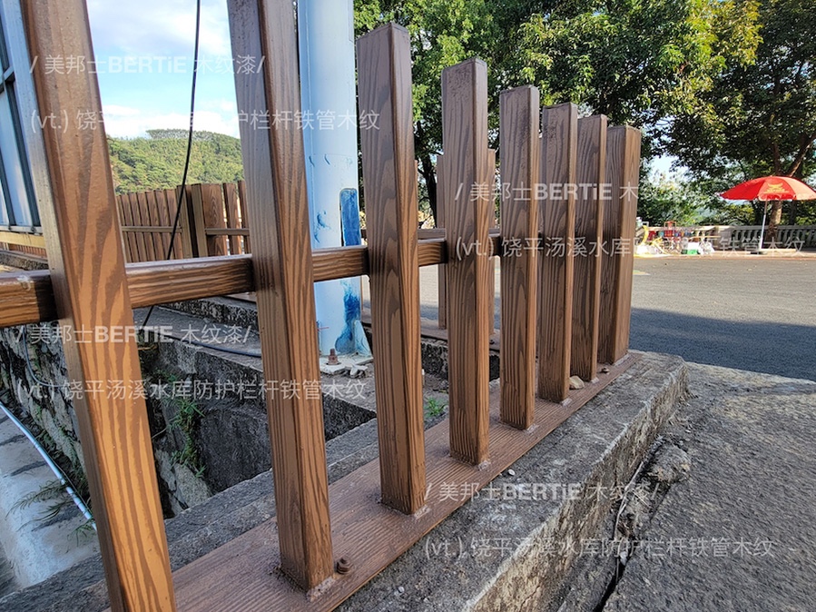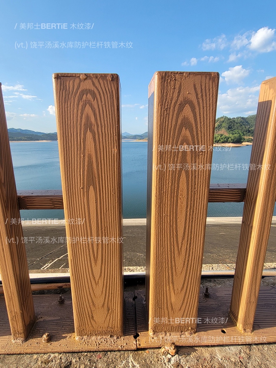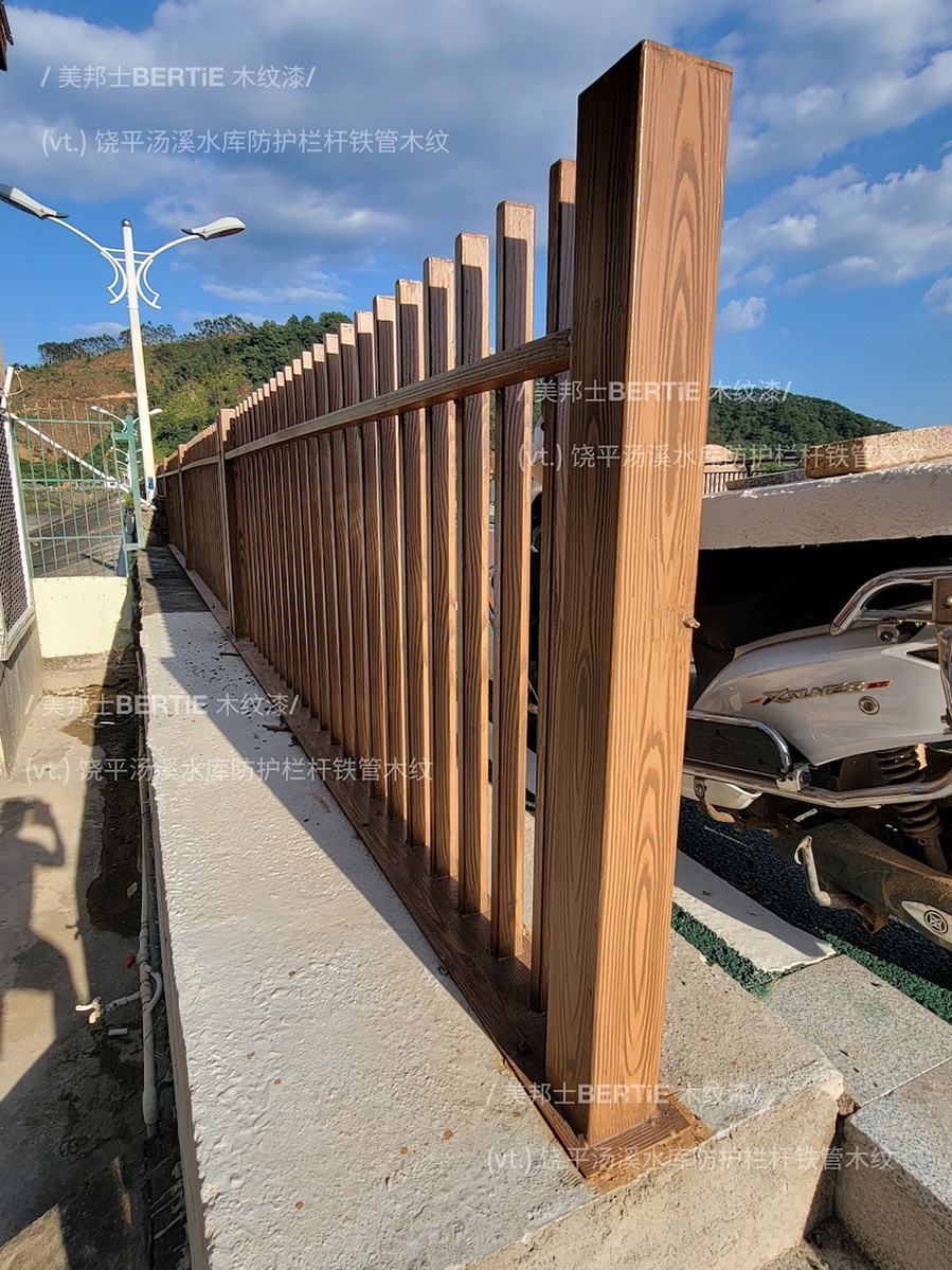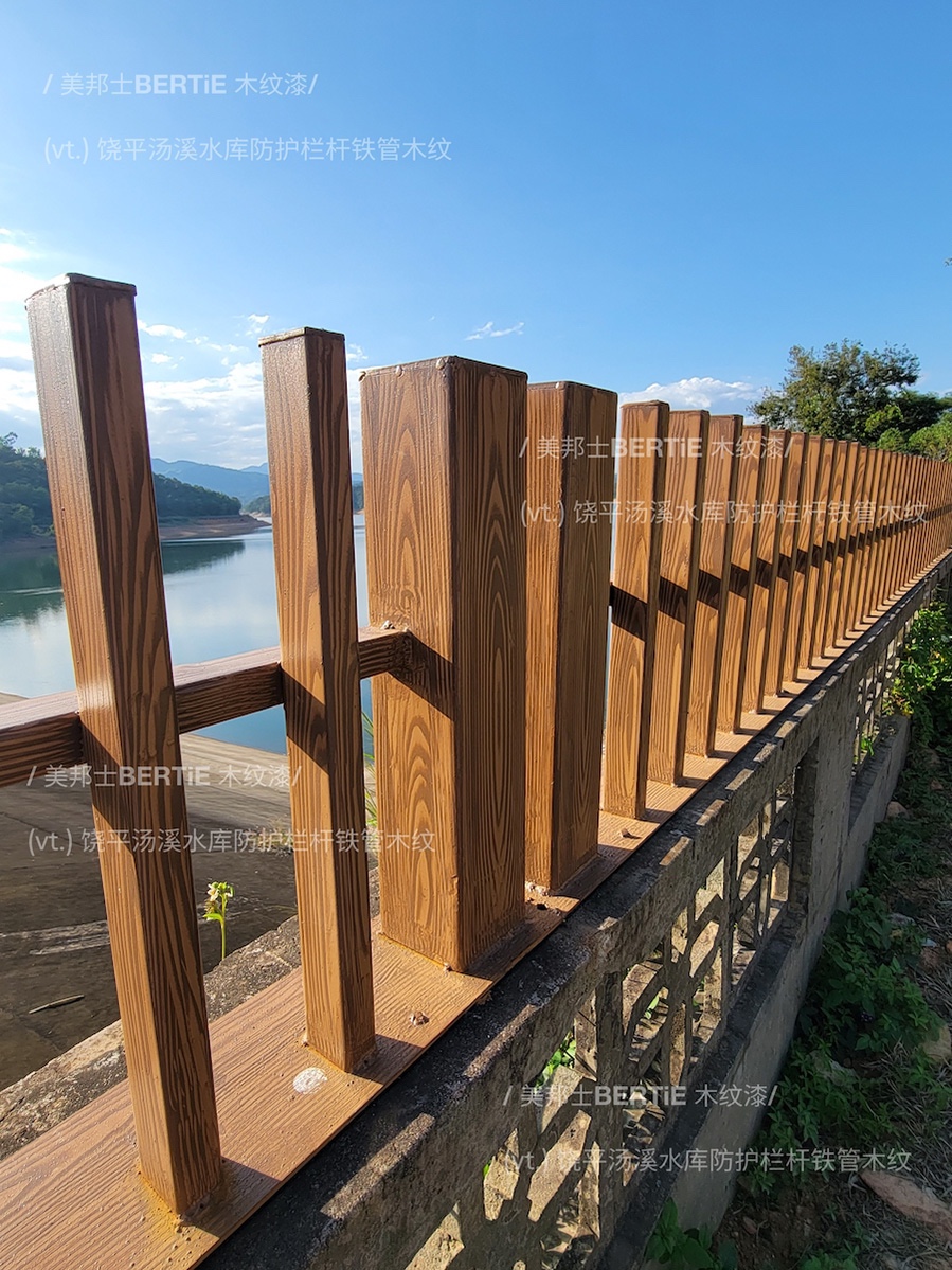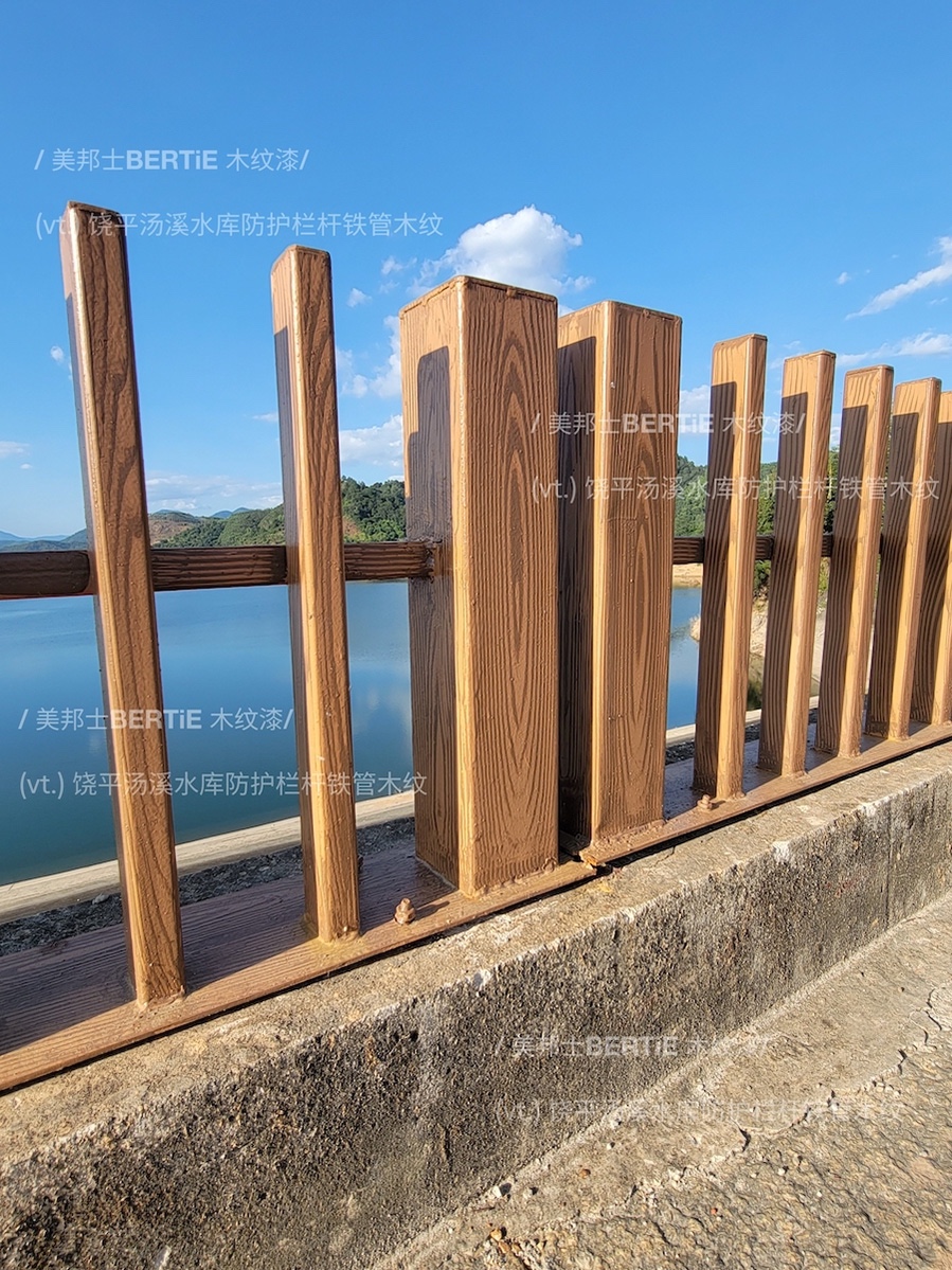 饒平縣湯溪水庫(kù)圍壩鐵管欄桿木紋漆