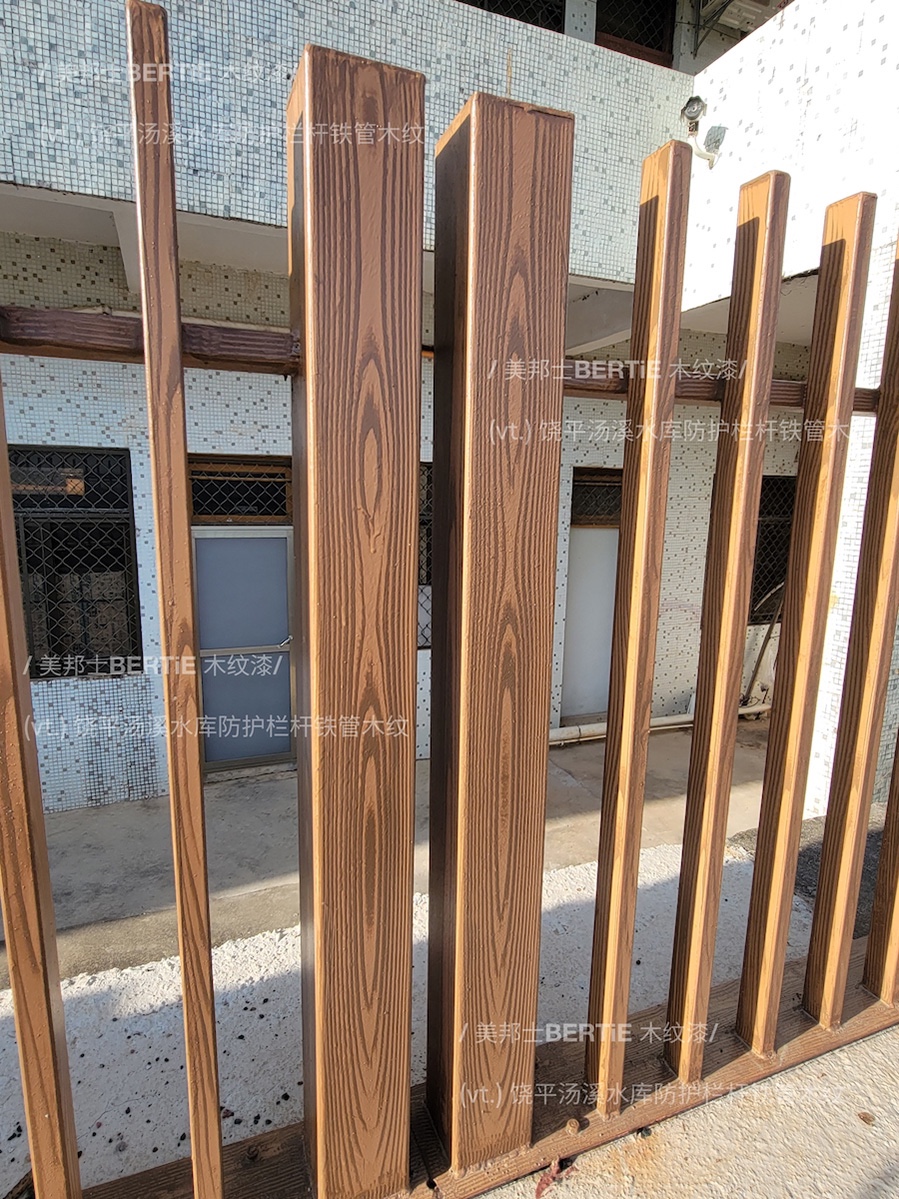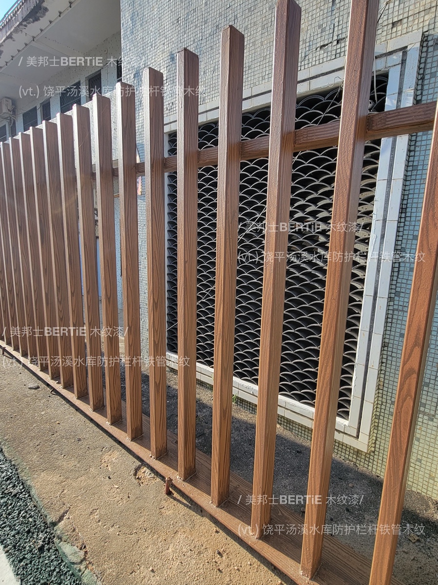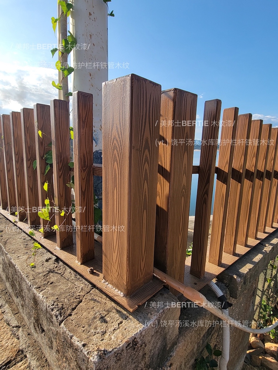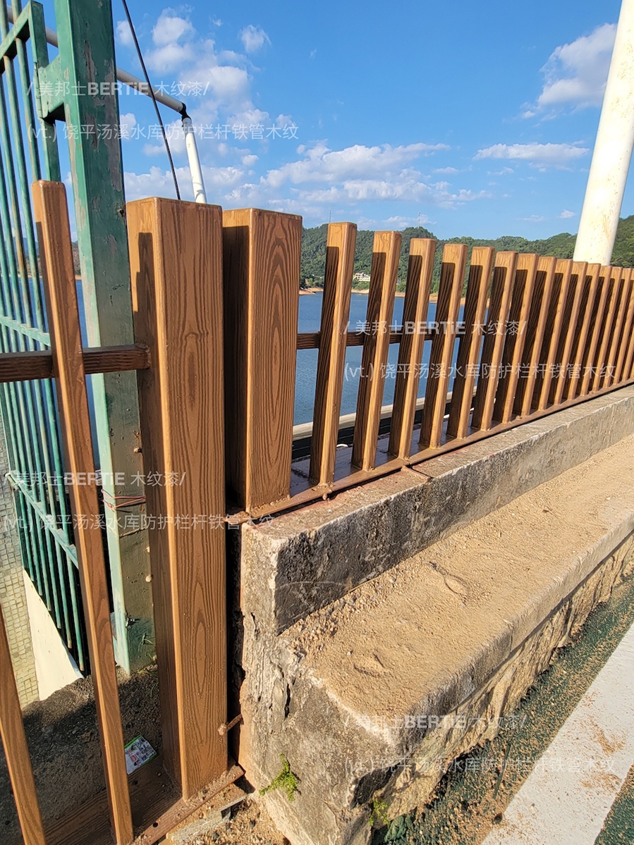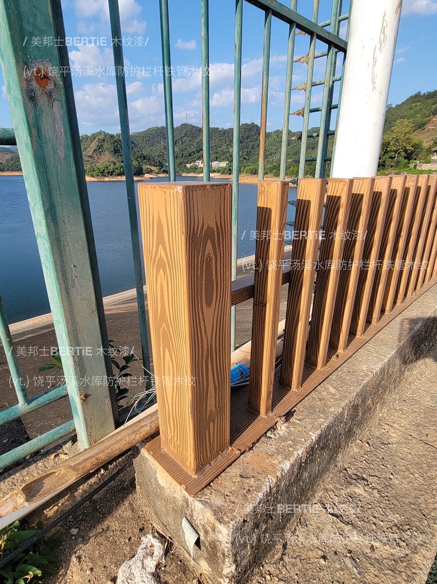 饒平縣湯溪水庫(kù)圍壩鐵管欄桿木紋漆