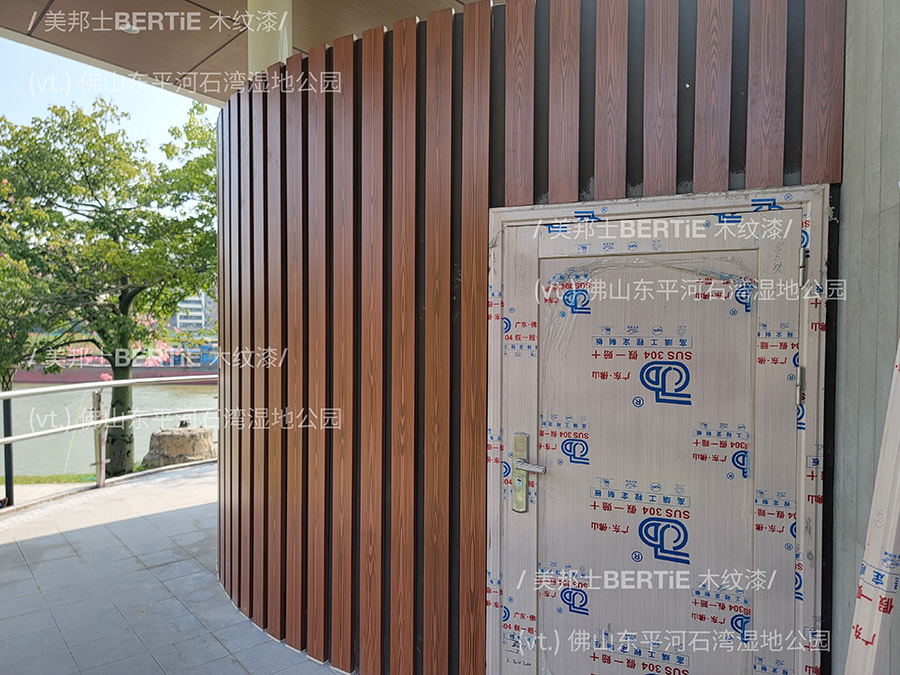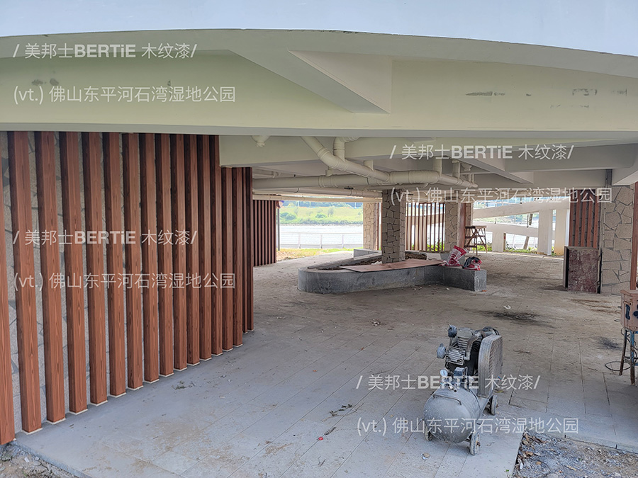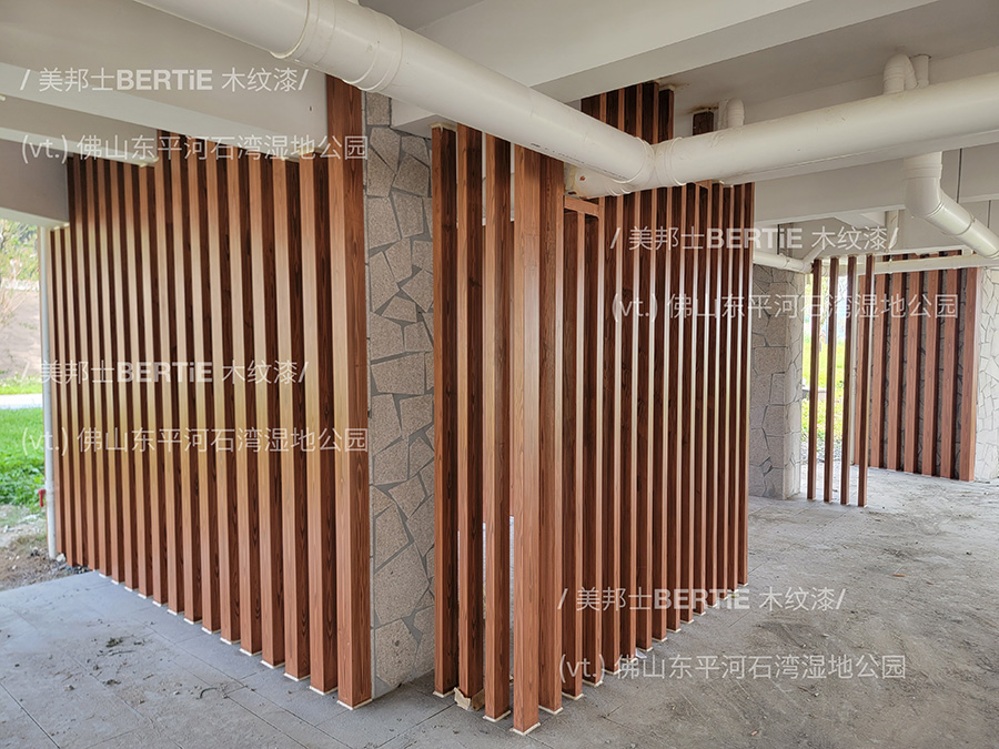 佛山東平河石灣濕地公園鍍鋅圍攔木紋漆