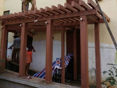 南海祈福南灣半島玻璃廊架木紋施工,顏色:14號(hào)金橡木木紋漆 仿木紋漆是水性藝術(shù)涂料、性能卓越、無毒無味、無污染、涂膜附著力強(qiáng)、阻燃、耐擦洗、耐酸堿、不腿色。呈現(xiàn)各種…
