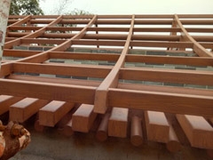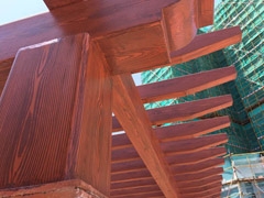云浮新興王香魚塘休閑文化活動(dòng)室,這是一個(gè)四合院結(jié)構(gòu)的建筑,頂上的結(jié)構(gòu)都是采用鐵管,做菠蘿格木紋漆施工,頂上蓋菠蘿格木,最終我們的仿木紋漆與菠蘿格木完美地結(jié)合一起…