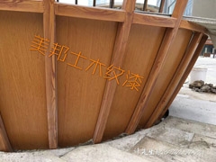 永州之野生態(tài)渡假村,混凝土長廊梁、柱子,涼亭、大門立柱全部采用我們公司的美邦士的木紋漆,菠蘿格木紋漆,顏色:15號色菠蘿格木紋漆 仿木紋漆是水性藝術(shù)涂料、性能…