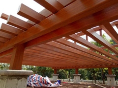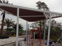 瓏翠花園三期車(chē)庫(kù)廊架木紋漆施工,瓏翠花園涼亭整體木紋施工,風(fēng)罩外框木紋漆施工。該項(xiàng)目是2016年施工,至今顏色未退,依然如初!顏色:15號(hào)色菠蘿格木紋漆,車(chē)庫(kù)入口鐵管…