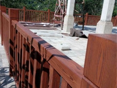 水泥欄桿做木紋比較常用,只要基面處理平整及進(jìn)行抗堿處理后,就不會(huì)有問(wèn)題。而水泥地面做水性仿木紋漆就極為罕見(jiàn),當(dāng)然這種創(chuàng)意由我們來(lái)創(chuàng)造!顏色:16號(hào)加州紅木紋漆。仿…