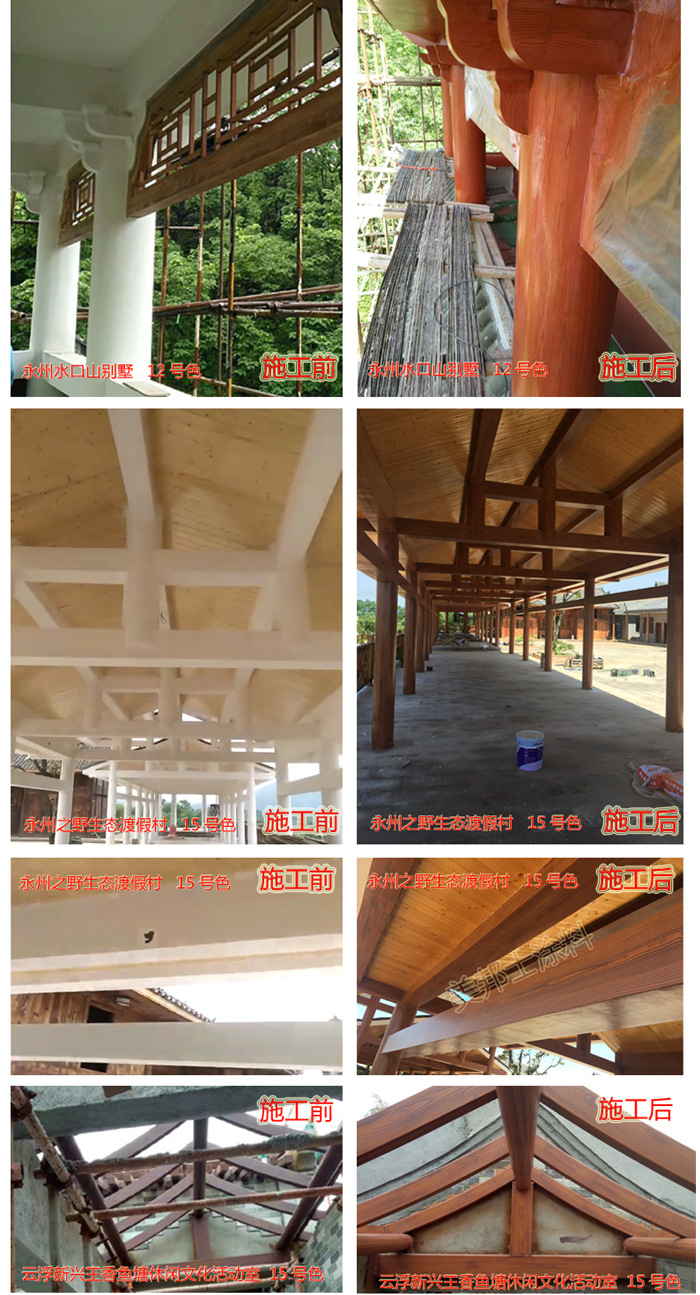 適用于辦公樓、賓館、住宅、廠房等外墻涂裝,車庫上方葡萄架、廊架、鐵架、涼亭等鋼結(jié)構(gòu)木紋外觀涂裝。